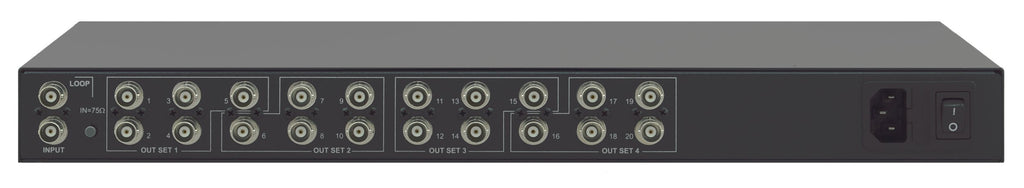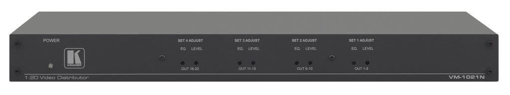 The Kramer VM-1021N/110V is a high-performance 1:20 composite or SD-SDI video distribution amplifier engineered for professional broadcast, production, and AV environments. Designed to maintain optimal signal integrity over long cable runs, it features grouped gain and EQ controls to compensate for losses, ensuring clean, stable, and consistent output quality across all 20 video outputs.