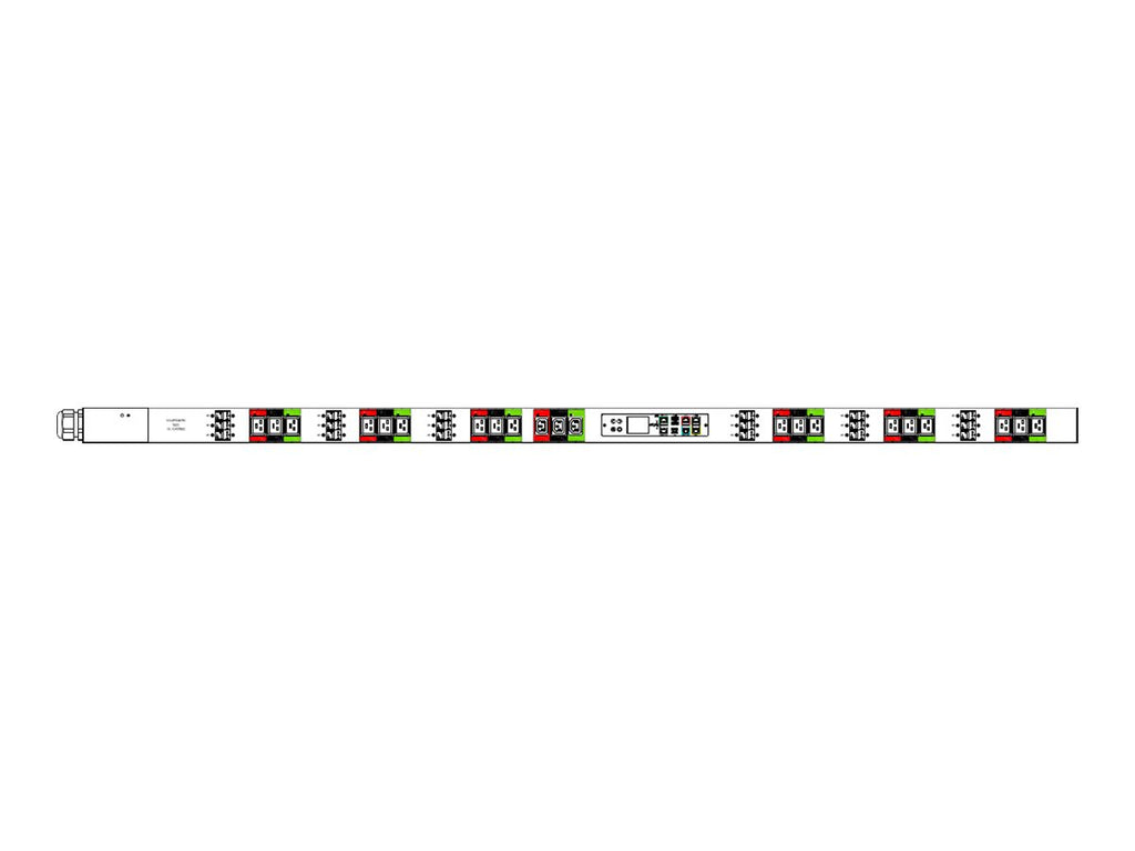 | Metering & Control | Voltage, current, kW, kVA, kWh, power factor; ±1% accuracy; metering per inlet, breaker, and outlet; remote outlet switching; color auto-flip LCD display |