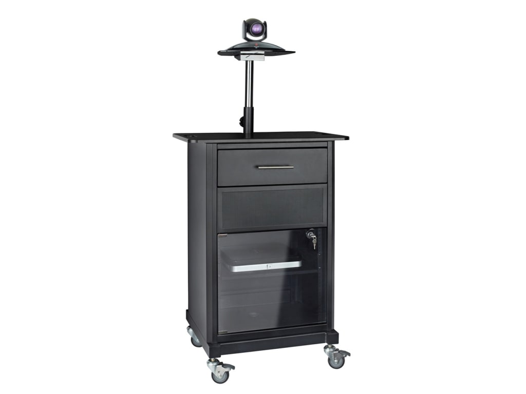 | Included Components | APA adjustable-height camera platform, AmpliVox® speaker module, adjustable interior rack shelf, 6-port surge protector |
