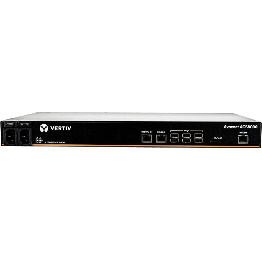 The Vertiv Avocent ACS8048MDAC-400 is a high-performance 48-port advanced serial console server designed for secure in-band and out-of-band management of IT infrastructure. With dual AC power supplies and an integrated analog modem, it ensures high availability and remote access even during network outages.