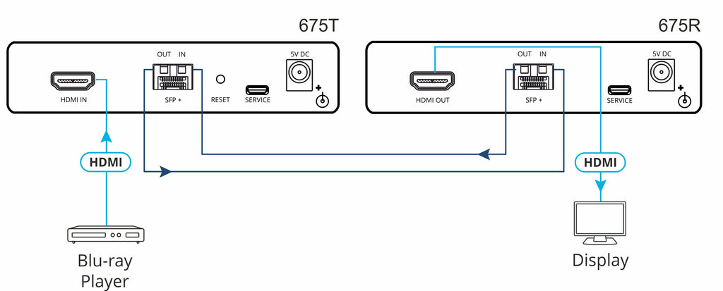 The Kramer 675R/T is a high-performance HDMI extender kit designed for ultra-long-distance 4K60 (4:4:4) signal transmission over multimode or single-mode fiber optic infrastructure. Engineered for mission-critical AV applications, the 675R/T converts HDMI to optical signals using Kramer certified 10Gbps SFP+ modules, ensuring near-zero latency and uncompromised image quality across distances up to 3km (MM) or 33km (SM).