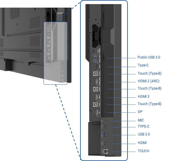 Built for modern connectivity, the TT-7524ZPRO includes USB-C with up to 100W power delivery, Wi-Fi 6, Bluetooth 5.2, and extensive I/O options. Integrated speakers, an 8-microphone array, and proximity sensing further enhance collaboration, making the Z Pro Series a powerful and future-ready interactive display platform.