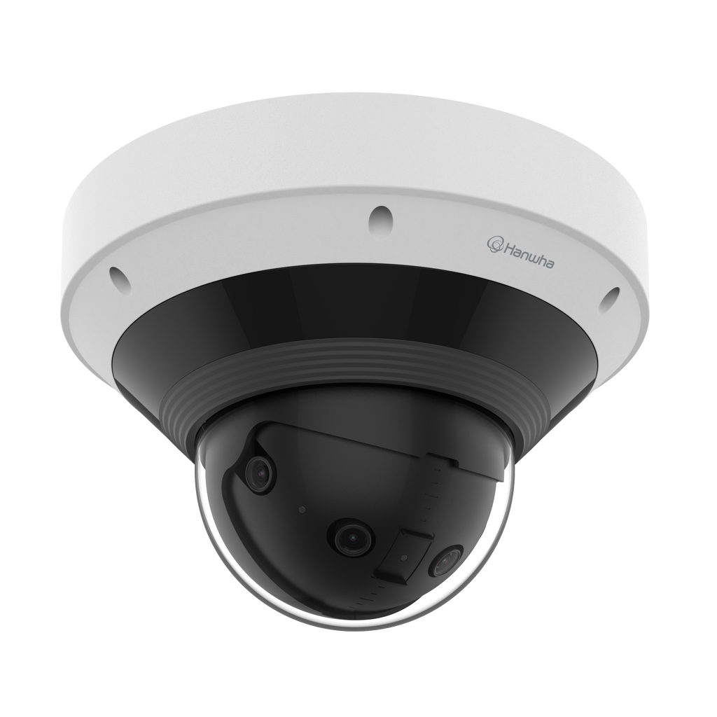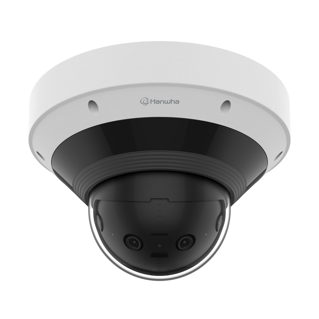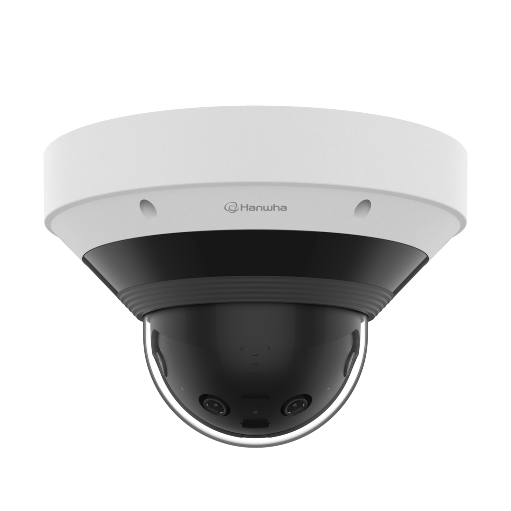The Hanwha Vision PNM-C9022RV/KEX is a TAA-compliant panoramic multi-sensor camera engineered for high-accuracy coverage in critical government, commercial, and outdoor security applications. Its powerful multi-sensor design delivers an ultra-wide 209° horizontal field of view with 8MP resolution at 20fps, enabling seamless panoramic surveillance with advanced alpha-blending for distortion-free imaging.