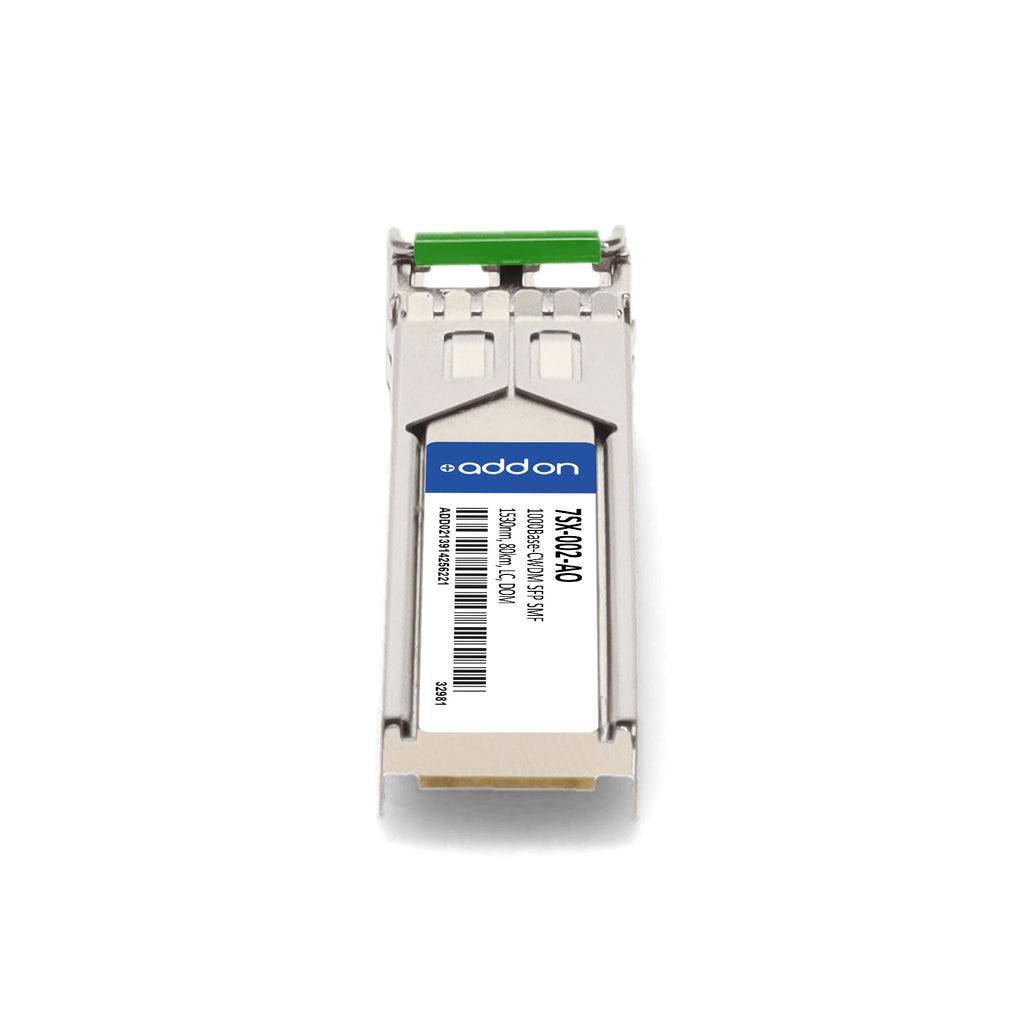 The AddOn Accedian® 7SX-002 compatible SFP transceiver delivers reliable 1000Base-CWDM connectivity over single-mode fiber (SMF) with distances up to 80km, utilizing a 1530nm wavelength via a duplex LC connector. Designed for seamless interoperability, this hot-swappable module is 100% compatible with the original Accedian® transceiver and has been programmed, serialized, and rigorously tested for identical initialization and performance.