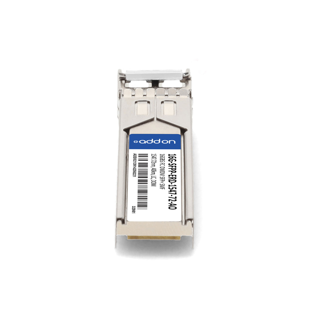 The AddOn Brocade® 16G-SFPP-ERD-1547-72 Compatible SFP+ Transceiver is a high-performance, hot-pluggable optical module designed for 16GBase-DWDM Fibre Channel applications. Operating over single-mode fiber (SMF), it delivers data rates up to 14.025 Gbps and supports distances of up to 40 km using a 1547.72 nm wavelength on the C-Band 100GHz DWDM grid. This module features a cooled EML transmitter, PIN receiver, duplex LC connector, and advanced Digital Optical Monitoring (DOM) for real-time diagnostics. Built to meet SFF-8432 and SFF-8472 standards, it ensures seamless interoperability, exceptional signal integrity, and reliable performance. Fully compliant with TAA regulations, RoHS, and EMI/EMC standards, this transceiver is ideal for Ethernet over DWDM, metro, access, and enterprise network deployments. Each unit is 100% tested for compatibility, serialized, and backed by a limited lifetime warranty.