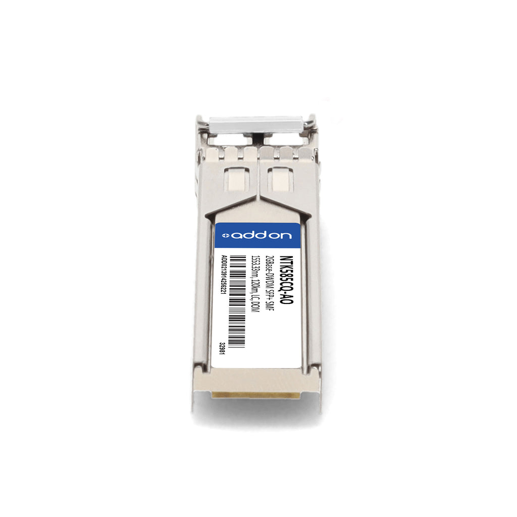 The AddOn Ciena® NTK585CQ-AO is a TAA-compliant, OC-48-LR2 DWDM 100GHz SFP transceiver designed for high-performance long-haul optical networking. Engineered for seamless compatibility with Ciena® equipment, this transceiver delivers OC-48 (2.488 Gbps) data rates over single-mode fiber (SMF) at distances up to 120 km, using a 1553.33 nm wavelength via a duplex LC connector.