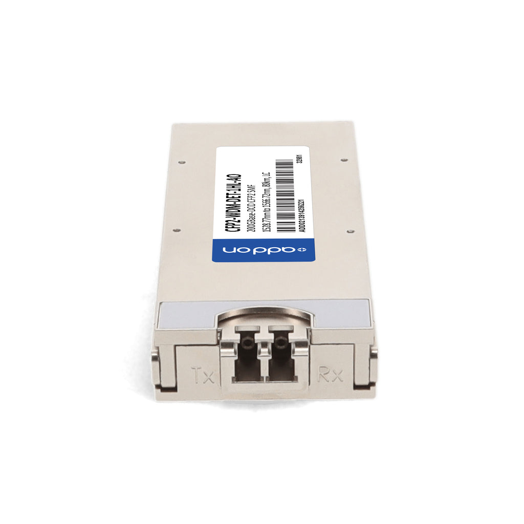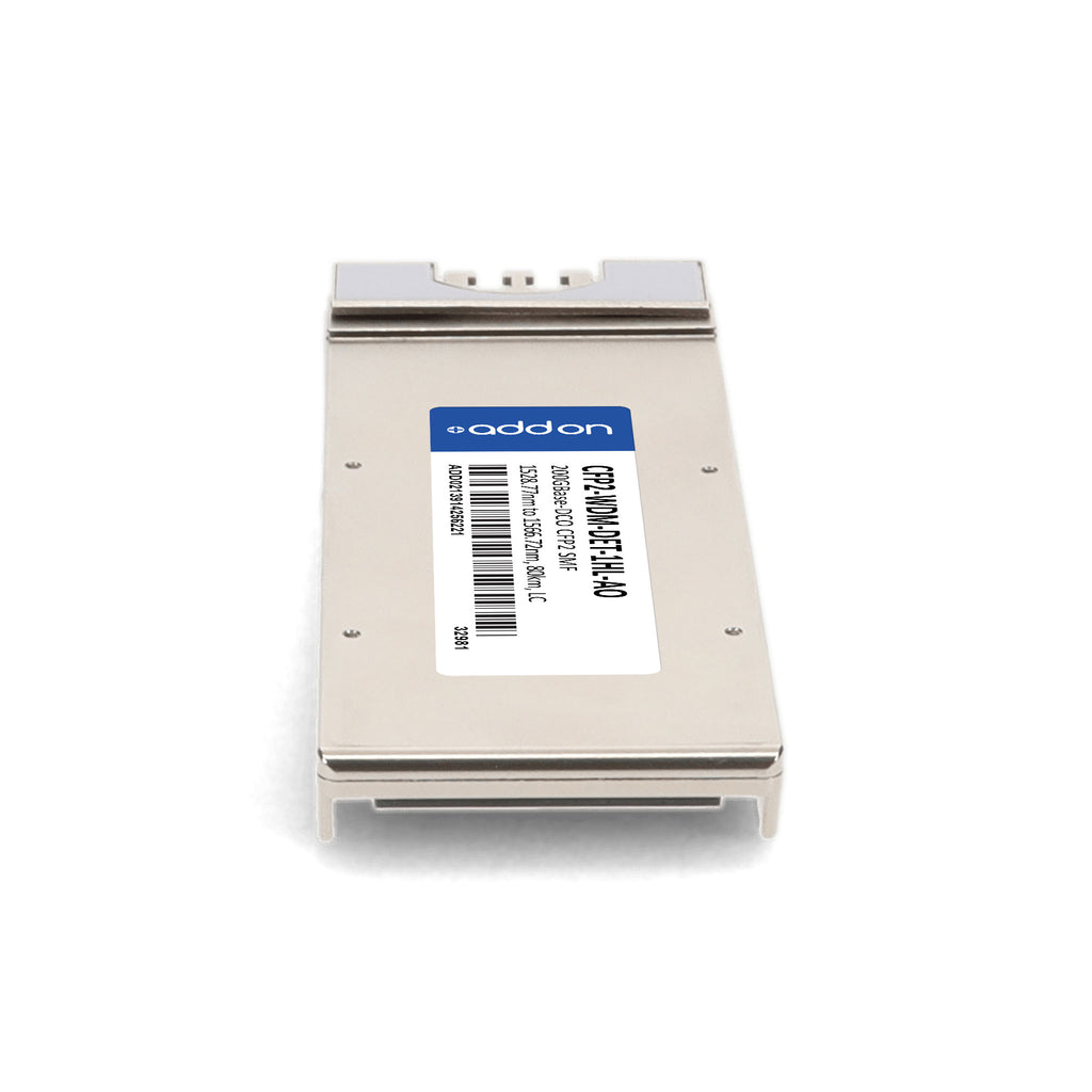 The AddOn Cisco® CFP2-WDM-DET-1HL compatible CFP2 transceiver delivers high-performance 100/200GBase-DWDM connectivity up to 80km over single-mode fiber (SMF). Operating across a tunable C-band wavelength range of 1528.77nm to 1568.36nm, this hot-pluggable module features an LC connector, coherent receiver, and tunable optical filter for advanced flexibility. It supports CAUI-4 and CEI-28G-VSR host interfaces, with proprietary internal Soft-Decision Forward Error Correction (SD-FEC) ensuring robust error handling and optimized performance. Built to meet or exceed Cisco® standards, this transceiver is fully MSA compliant, TAA compliant, and backed by AddOn’s limited lifetime warranty for reliability and peace of mind.