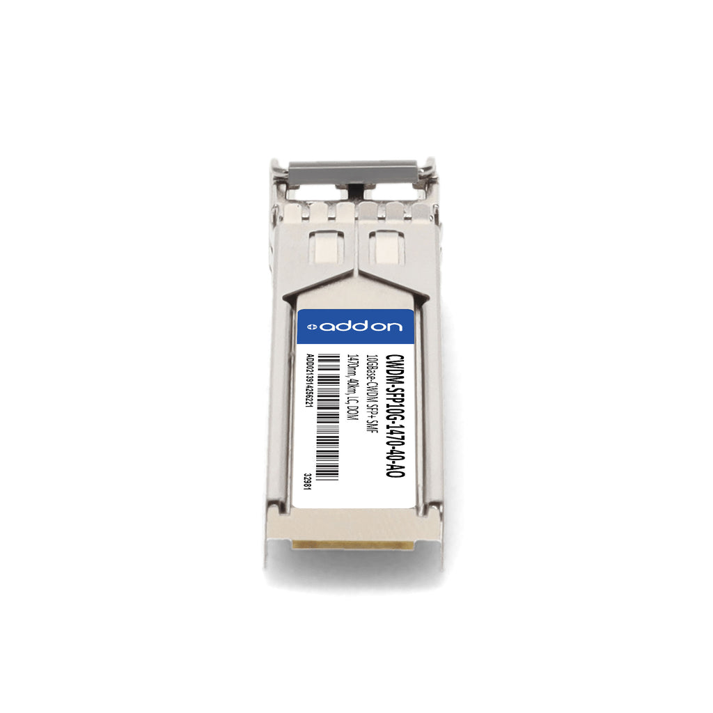 The AddOn Cisco® CWDM-SFP10G-1470-40 compatible transceiver is a high-performance, TAA-compliant 10GBase-CWDM SFP+ module designed for reliable long-distance connectivity. It delivers data rates up to 11.3Gbps and supports distances of up to 40km over single-mode fiber (SMF) using a 1470nm wavelength via an LC duplex connector.