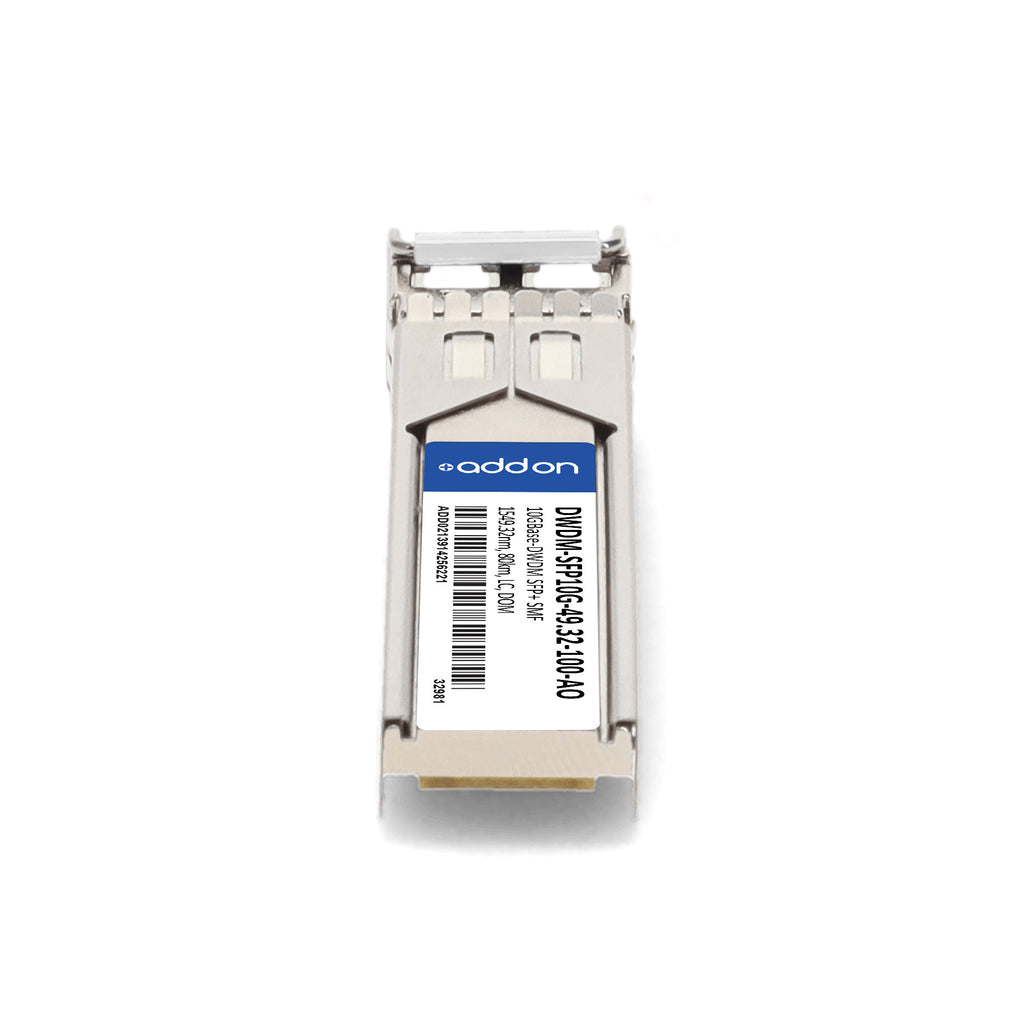 The AddOn Cisco® DWDM-SFP10G-49.32 Compatible TAA 10GBase-DWDM SFP+ Transceiver delivers reliable 10 Gigabit Ethernet connectivity over single-mode fiber (SMF) with a reach of up to 100km. Operating on C-Band Channel DW35 (1549.32nm) with a 100GHz channel spacing, this hot-swappable SFP+ module ensures seamless integration into Cisco networking equipment and is fully compliant with SFF-8432 and SFF-8472 standards.