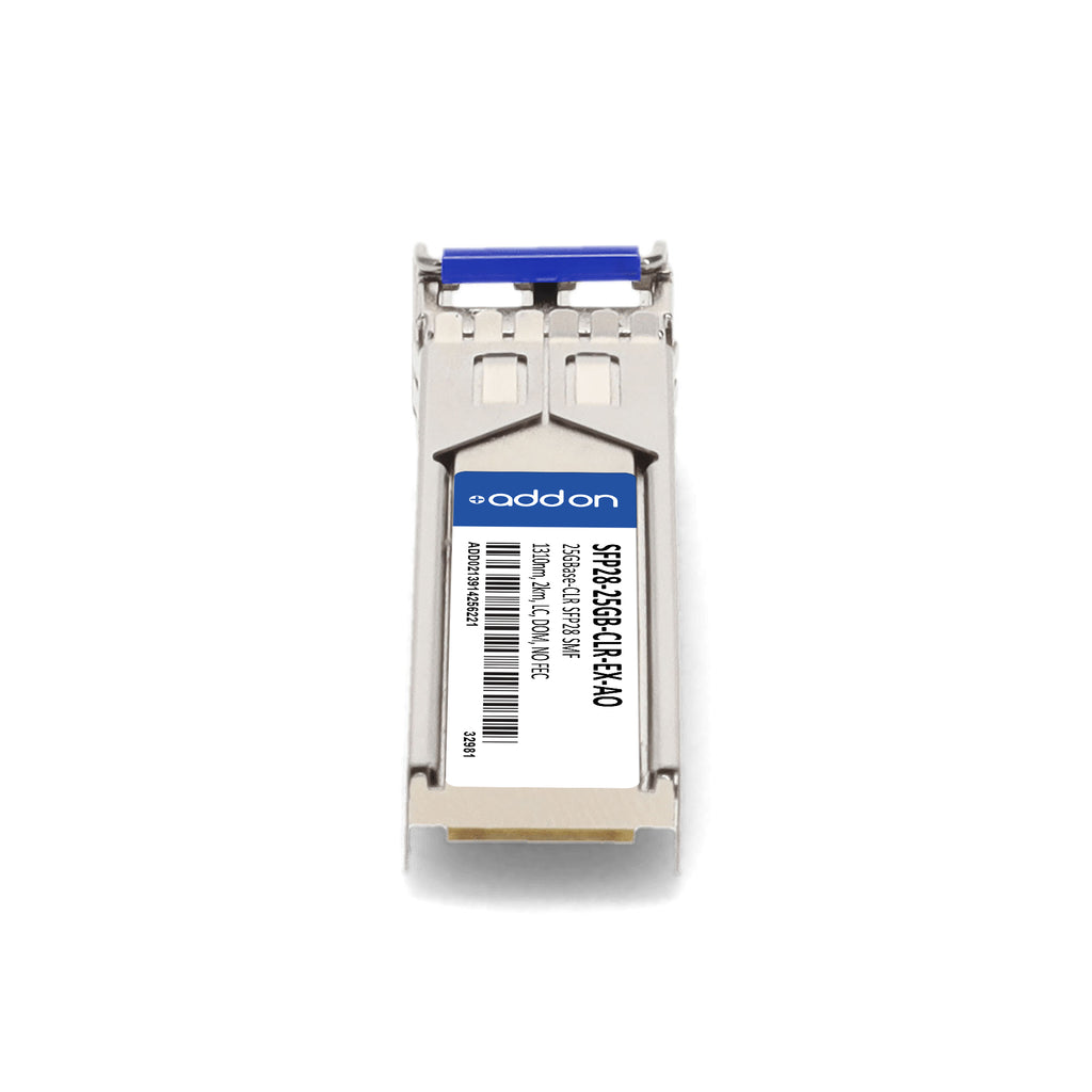 The AddOn SFP28-25GB-CLR-EX-AO is an Extreme Networks® compatible 25GBase-CLR SFP28 transceiver that delivers reliable data transmission up to 2km over single-mode fiber (SMF) using a 1310nm wavelength with an LC connector. Designed for performance and compliance, this module supports 25.78125Gbd bi-directional data links and features a built-in dual CDR with bypass control for stable signal integrity.