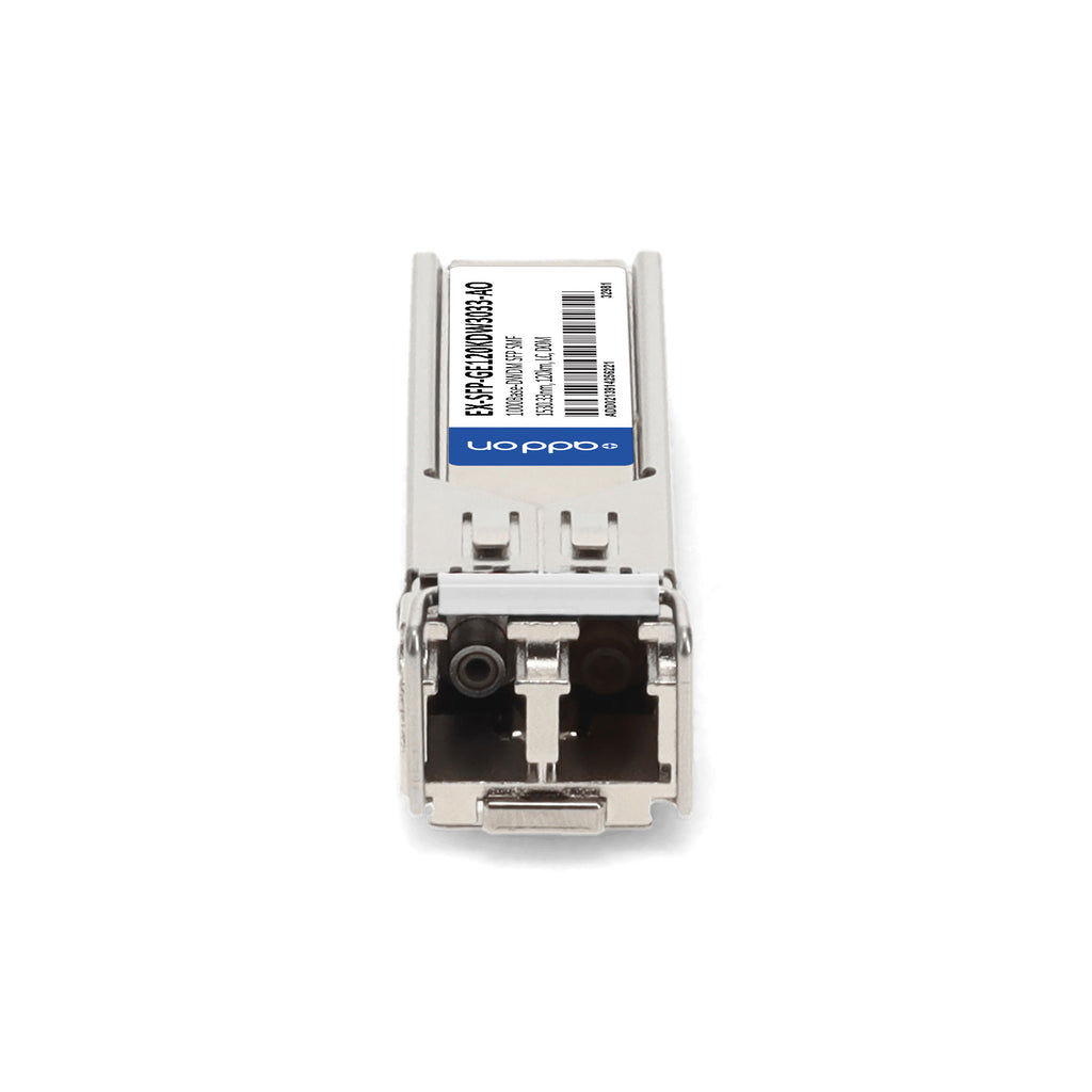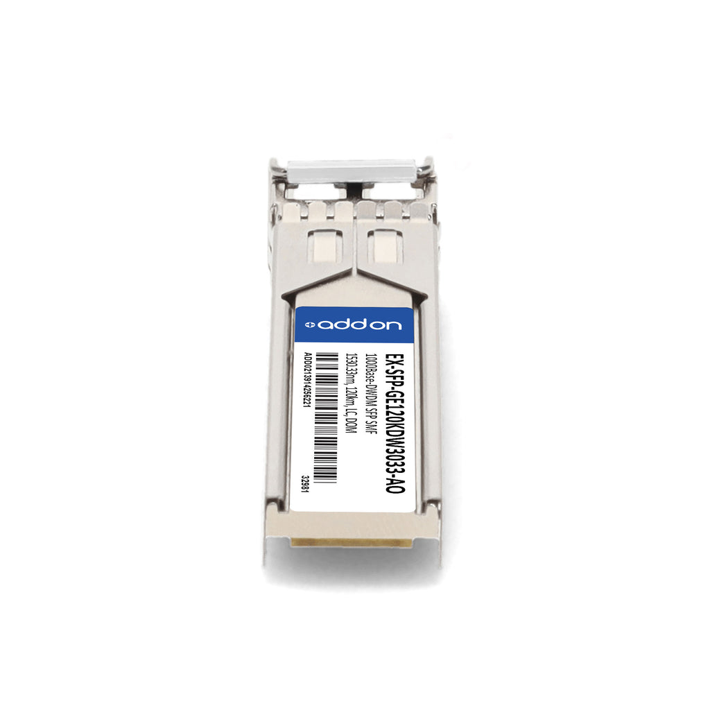 The AddOn Juniper Networks® EX-SFP-GE120KDW3033 Compatible SFP transceiver delivers reliable 1000Base-DWDM connectivity with extended reach up to 120 km over single-mode fiber (SMF) using a precise 1530.33 nm wavelength. Designed for access, metro, and enterprise networks, this hot-pluggable transceiver features a duplex LC connector and supports digital optical monitoring (DOM) for real-time performance insights. It is fully compliant with INF-8074 and SFF-8472 standards and ensures seamless interoperability with the original Juniper Networks® transceiver. Backed by rigorous testing and a limited lifetime warranty, this TAA-compliant module is ideal for Gigabit Ethernet and Fibre Channel over DWDM applications where long-distance, high-performance transmission is critical.