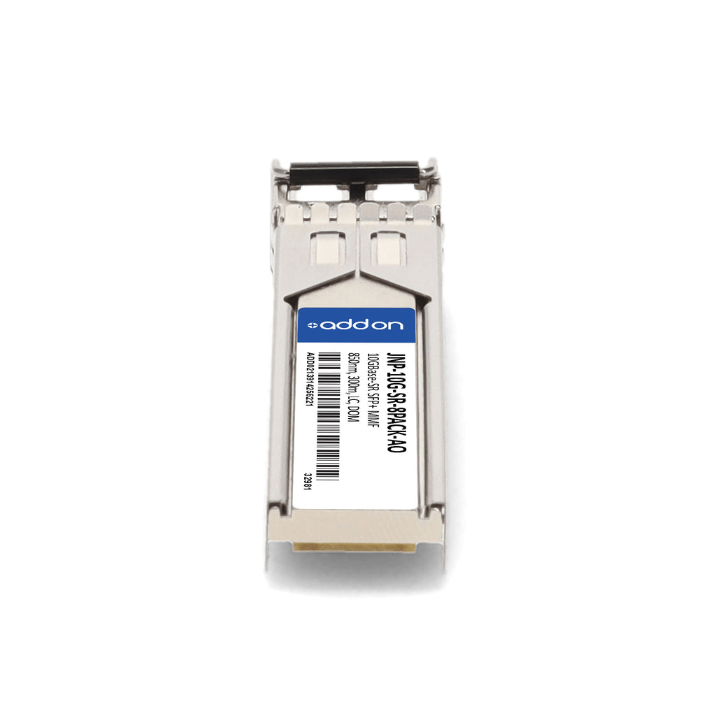 The AddOn Juniper Networks® JNP-10G-SR-8PACK Compatible TAA 10GBase-SR SFP+ Transceiver 8-Pack provides high-performance, cost-effective connectivity for 10-Gigabit Ethernet and Fibre Channel applications. Each transceiver delivers 10GBase-SR throughput up to 300 meters over multi-mode fiber (MMF) using an 850nm VCSEL transmitter and a duplex LC connector.