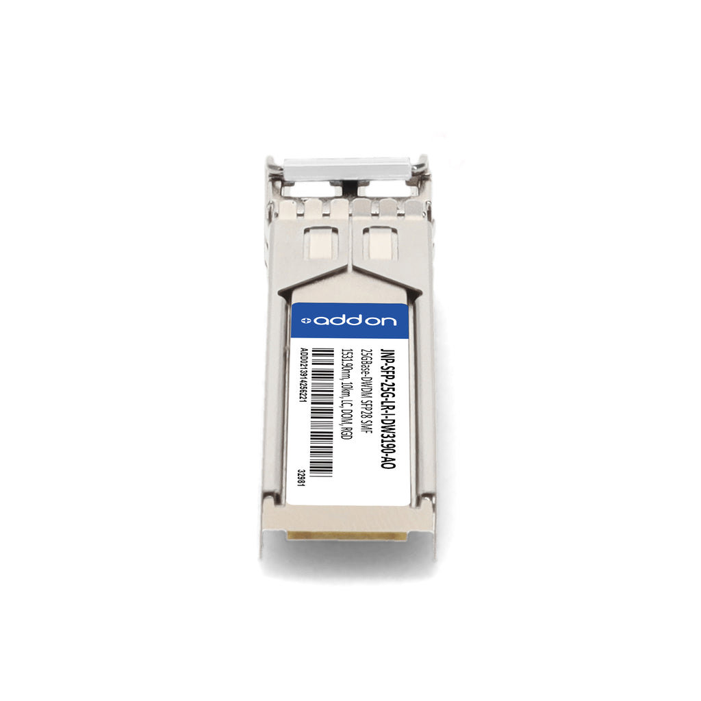 The AddOn Juniper Networks® JNP-SFP-25G-LR-I-DW3190 compatible transceiver is a high-performance, cost-effective solution for 25G optical networking. Supporting 25GBase-DWDM throughput up to 10km over single-mode fiber (SMF), this SFP28 module operates on the 1531.90nm wavelength with a duplex LC connector.