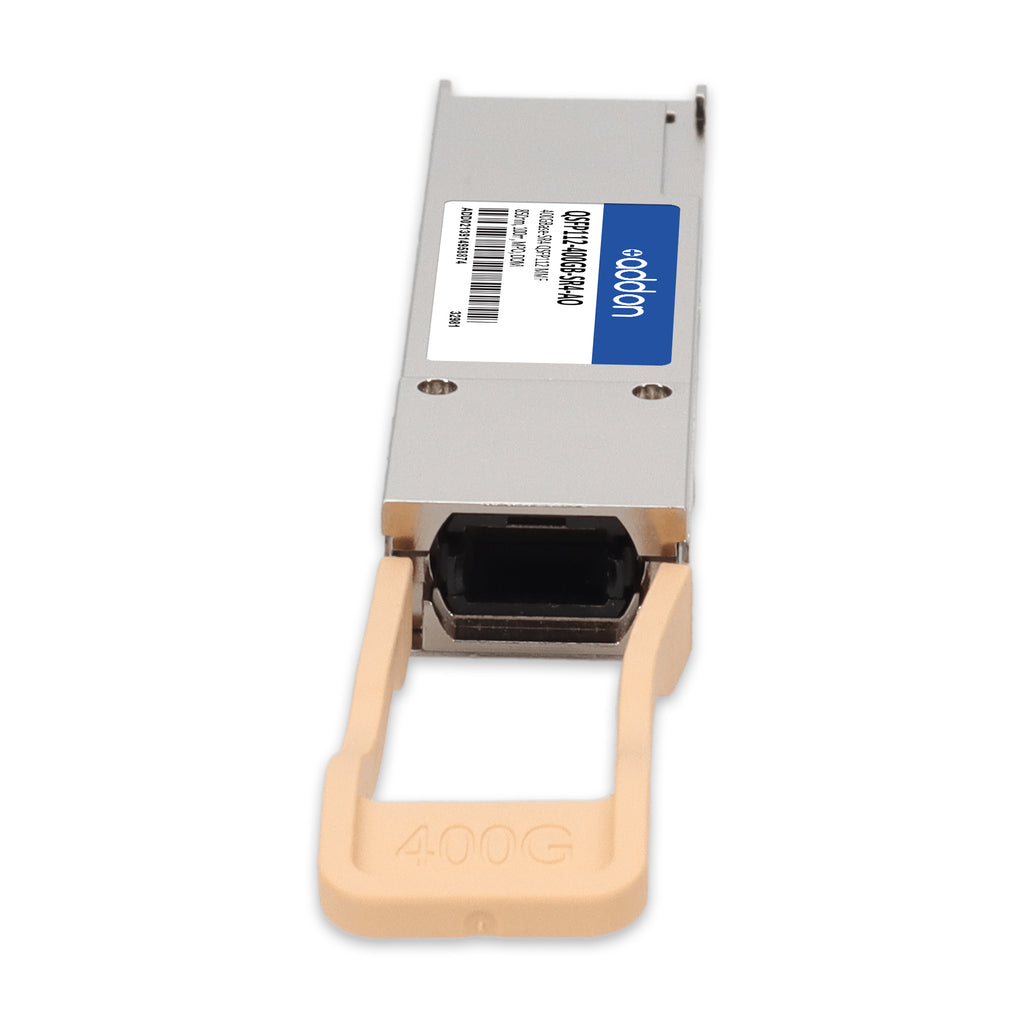 The AddOn QSFP112-400GB-SR4-AO is an industry-standard, MSA-compliant, and TAA-compliant 400GBase-SR4 QSFP112 transceiver designed for high-performance data center and enterprise networks. Operating over multimode fiber (MMF) with an MPO-12 APC connector, it delivers up to 400Gbps throughput across distances of up to 100 meters using a wavelength of 850nm.