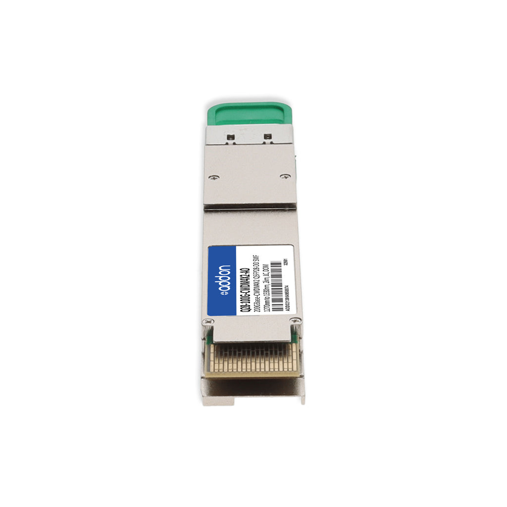 The AddOn Q28-100G-CWDM4X2-AO is an MSA- and TAA-compliant 2x100GBase-CWDM4 QSFP28-DD optical transceiver designed for high-performance data center, enterprise, metro, and access network applications. It delivers an aggregate data rate of 206 Gbps over single-mode fiber (SMF) with a maximum reach of 2 km using wavelengths from 1270 nm to 1330 nm via a CS duplex connector.