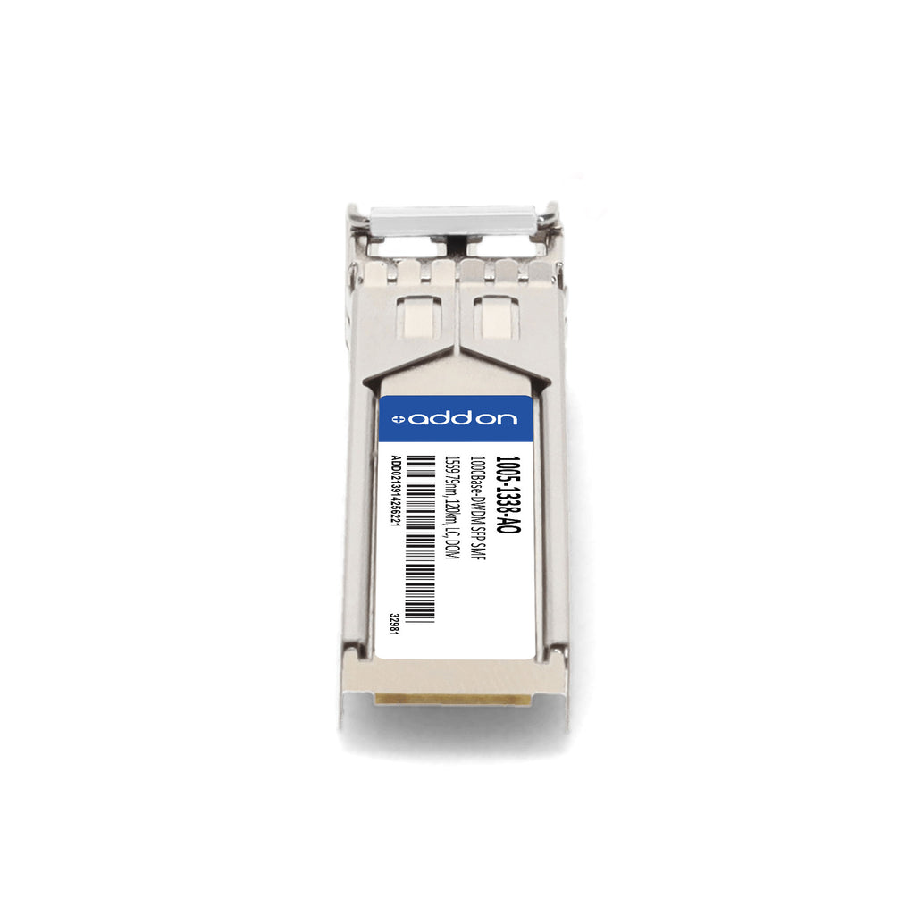 The AddOn Optelian® 1005-1338-AO is a 1000Base-DWDM SFP transceiver engineered for high-performance, long-distance data transmission. Delivering up to 120km reach over single-mode fiber (SMF) using a 1559.79nm wavelength, this hot-pluggable transceiver supports Digital Optical Monitoring (DOM) for real-time performance insights. It’s fully compliant with INF-8074 and SFF-8472 standards, features a duplex LC connector, and operates within a commercial temperature range of 0°C to 70°C. Designed for Gigabit Ethernet, Fibre Channel, and DWDM network applications across access, metro, and enterprise environments, this module is TAA compliant, RoHS certified, and guaranteed to be 100% compatible with Optelian® equipment.