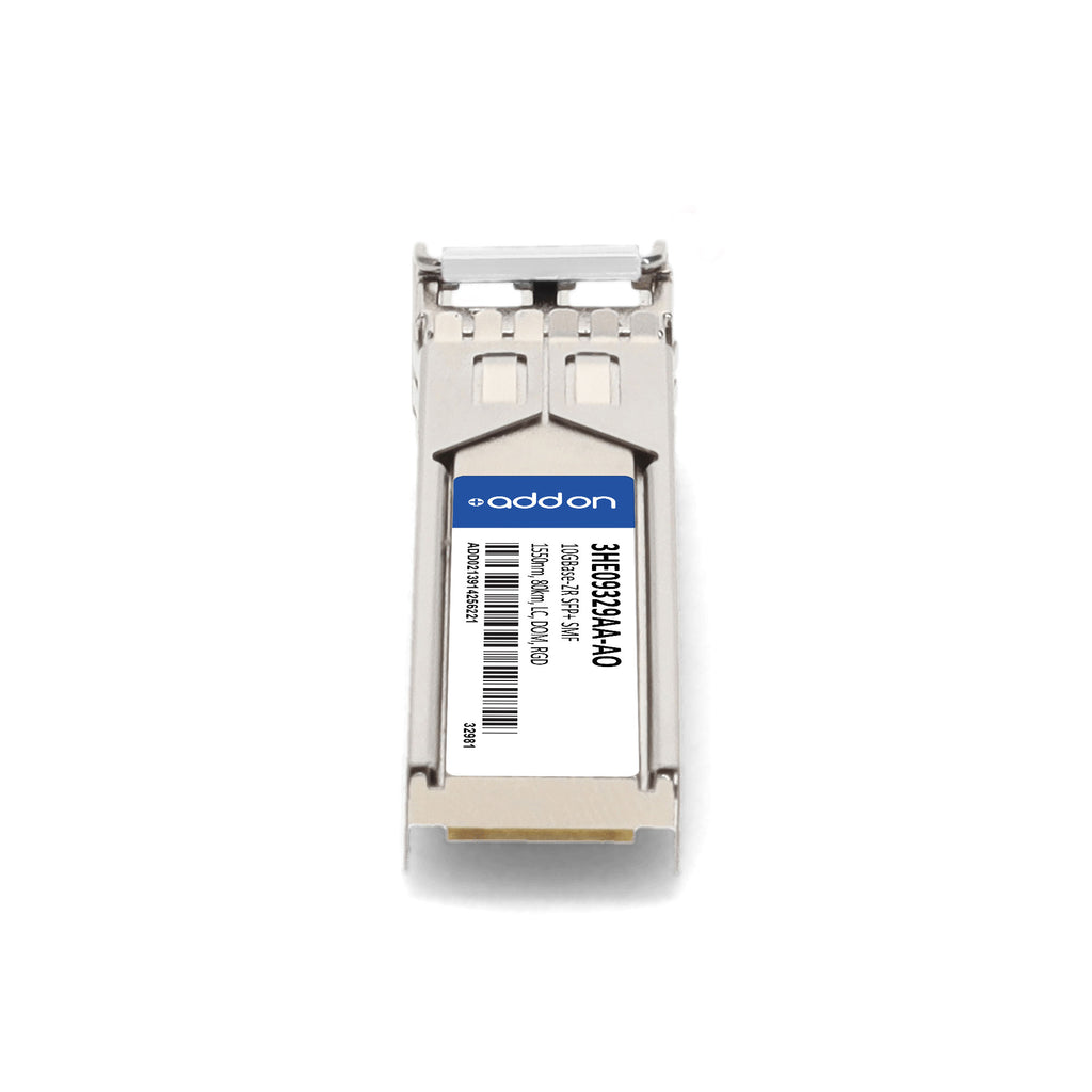The AddOn Alcatel-Lucent Nokia® 3HE09329AA Compatible TAA 10GBase-ZR SFP+ Transceiver is a high-performance optical module designed for reliable long-distance data transmission. It delivers 10GBase-ZR throughput up to 80km over single-mode fiber (SMF) using a 1550nm wavelength and features a duplex LC connector.