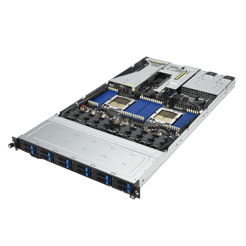 The ASUS RS700A-E12-RS12U-16W10G is a next-generation 1U dual-socket rack server designed for performance-driven workloads across cloud, virtualization, and enterprise storage environments. Powered by 4th Gen AMD EPYC™ 9004 Series processors with AMD 3D V-Cache™ technology, it delivers exceptional computing power and energy efficiency in a compact form factor.