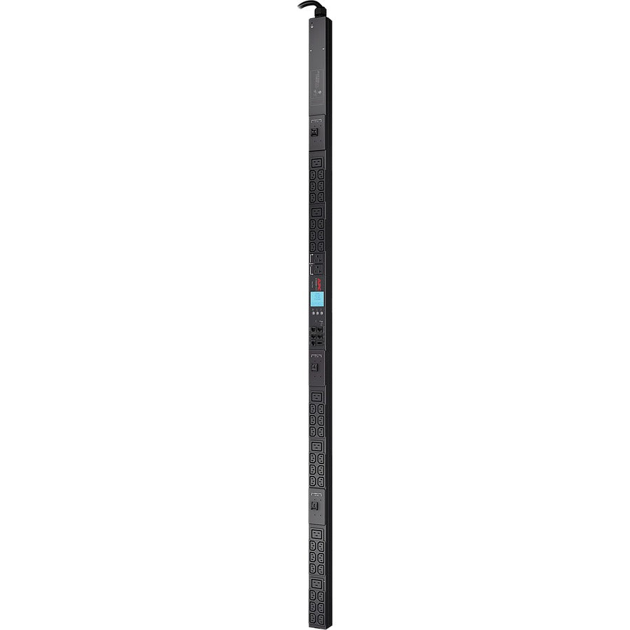 The APC AP8865BLUX667 is a high-density, metered rack power distribution unit designed to optimize power usage and enhance operational efficiency in modern data centers. With a total of 44 outlets—36 x IEC C13, 6 x IEC C19, and 2 x NEMA 5-20R—this ZeroU vertical PDU delivers 8.6kW at 208V through a reliable NEMA L21-30P input. Its integrated digital display provides accurate load-level monitoring to prevent overloads. Engineered for flexibility and resilience, the unit includes overload and circuit protection, SNMP/HTTP/Telnet manageability, and a durable blue chassis for visual phase identification.