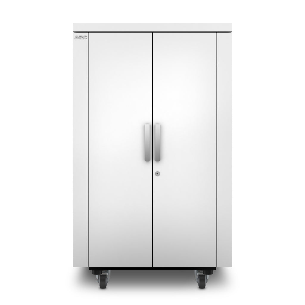 The APC NetShelter CX AR4024SPX432 is a 24U secure, soundproof rack enclosure designed for high-performance IT deployments in noise-sensitive environments. This “server room in a box” comes pre-configured with integrated cooling and acoustic insulation, making it ideal for office spaces and branch locations. The enclosure includes shock packaging with a rugged pallet, unloading ramp, and durable shell, making it suitable for safe transport of pre-integrated systems. Its clean white finish complements modern interiors while providing efficient noise reduction and thermal performance.