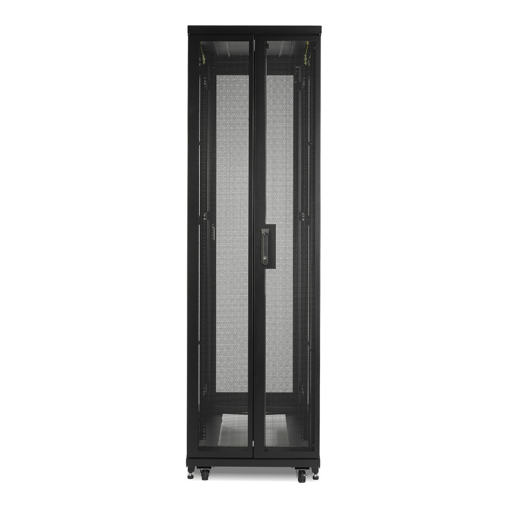 The APC NetShelter SV AR2401 is a universal IT rack enclosure with 42U height and no side panels—ideal for low to medium density server and networking environments where adjacent enclosures form a row. Designed for data center space optimization, its compact 600mm width and 1060mm depth allow easy placement and mobility, even through standard doorways. Pre-installed casters and included hardware streamline setup and baying.