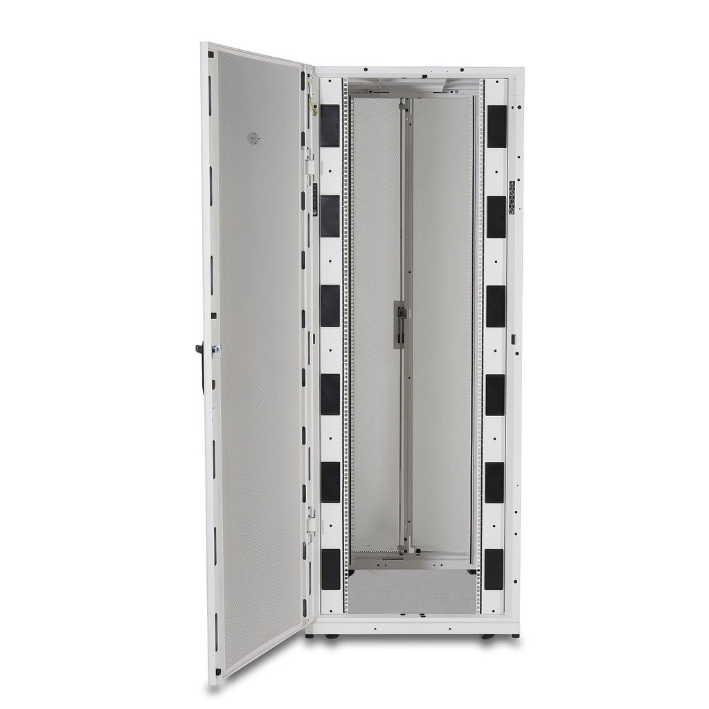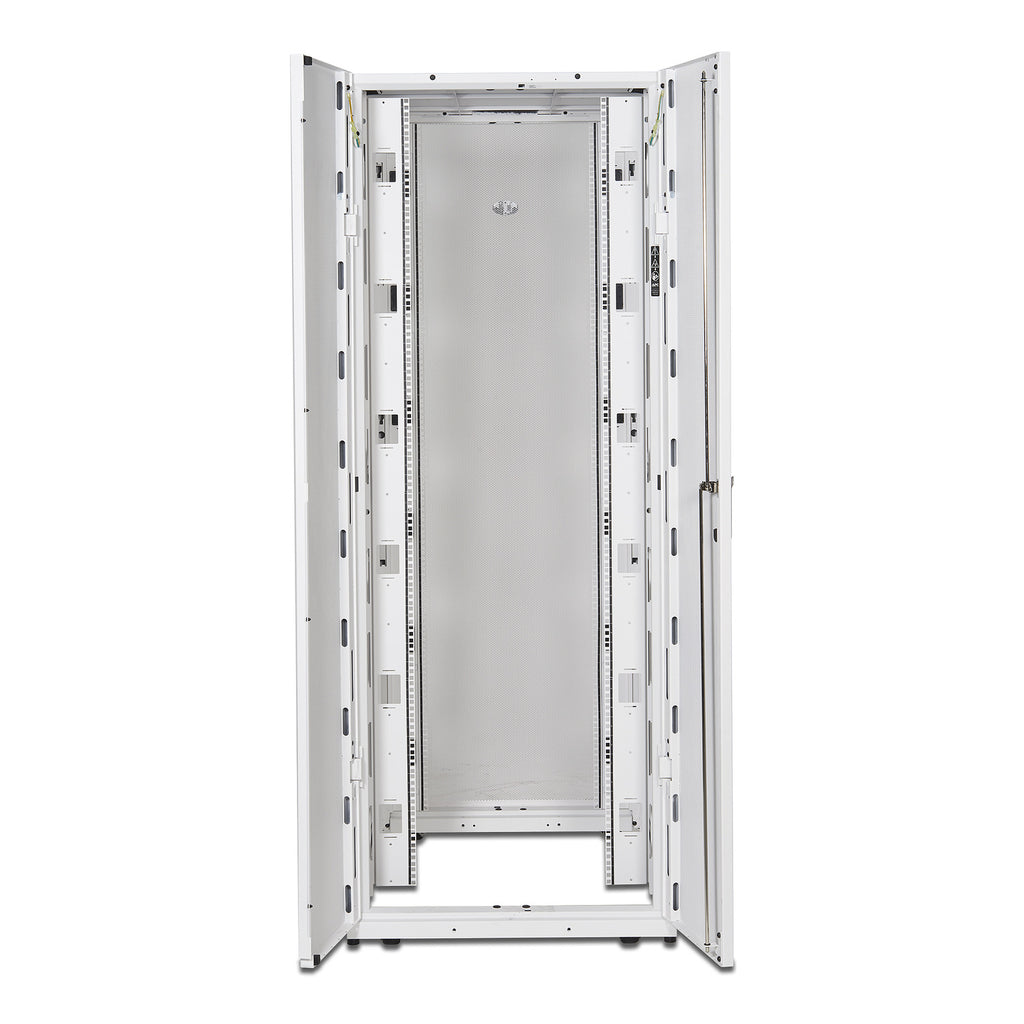 The APC NetShelter SX AR3155W is a premium 45U server rack enclosure designed for optimal performance in data centers, server rooms, and wiring closets. With a wider 750mm frame and 1070mm depth, this cabinet accommodates high-density cabling, airflow, and advanced IT equipment installations. Finished in a sleek white powder coat, it enhances visibility in high-tech environments and blends seamlessly with modern data center aesthetics. This floor-standing enclosure includes side panels and supports versatile mounting configurations for networking, server, and telecom equipment.