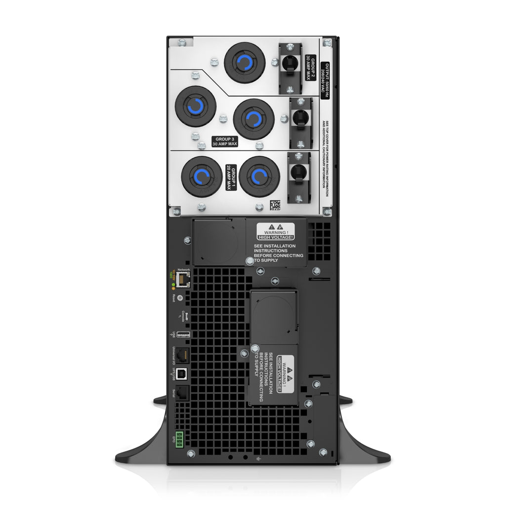 The APC Smart-UPS SRT6KXLTUS delivers reliable double-conversion online power protection for mission-critical servers, storage, and network equipment. This 6kVA/6kW UPS provides consistent sine wave output and supports extended runtime through optional external battery packs. Featuring 2x NEMA L6-20R and 3x NEMA L6-30R outlets, this rack/tower convertible model includes a Network Management Card and SmartSlot for remote monitoring and graceful shutdown via PowerChute Network Shutdown. Compatible with EcoStruxure IT and backed by a 3-year warranty (2 years for battery), it's ideal for demanding IT, healthcare, and light industrial environments. Rail kits sold separately.