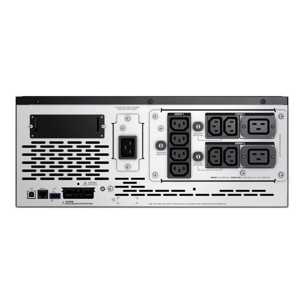 The APC Smart-UPS X SMX2200HV delivers reliable, line-interactive sine wave power in a 4U convertible rack/tower format. Designed for servers, networking hardware, and mission-critical systems, it features a 2200VA/1980W capacity with extended runtime options via up to 10 external battery packs. Equipped with 8x IEC C13 and 2x C19 outlets, SmartSlot for network management, and user-selectable voltage from 200V to 240V, this UPS ensures optimal uptime and control. Its short depth design saves rack space while the replaceable APCRBC143 battery cartridge ensures simplified maintenance.