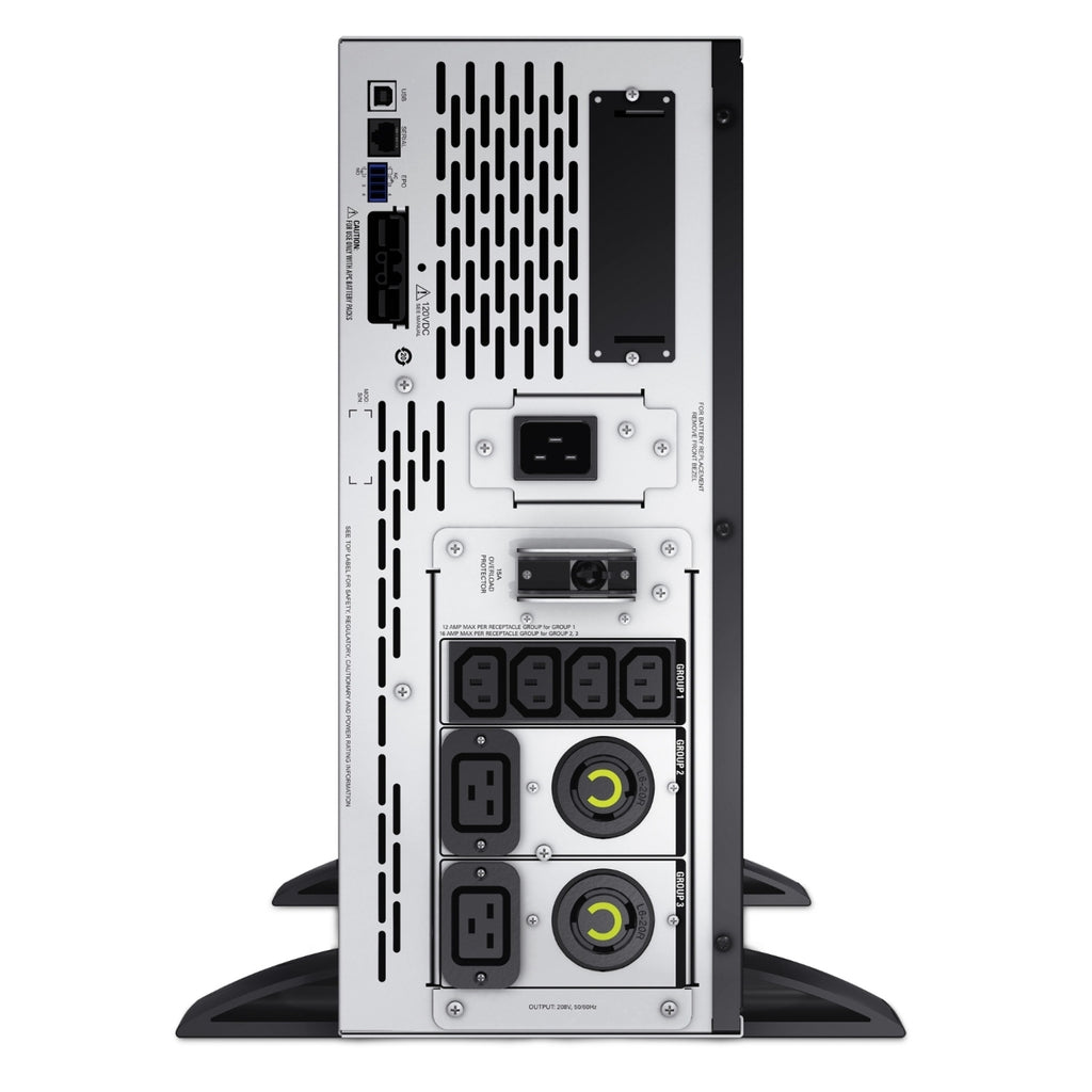 The APC Smart-UPS X SMX3000HVTUS is a line-interactive 3kVA/2700W uninterruptible power supply designed to keep your IT infrastructure running during outages. It features a convertible 4U rack/tower form factor, short depth for better cable management, and pure sine wave output for reliable power protection. With support for up to 10 external battery packs (SMX120BP), this UPS ensures scalable runtime. Equipped with a SmartSlot, it enables remote management and graceful shutdown of servers via PowerChute Network Shutdown. It includes L6-20R, IEC C13, and C19 outlets, and is TAA compliant for government applications.