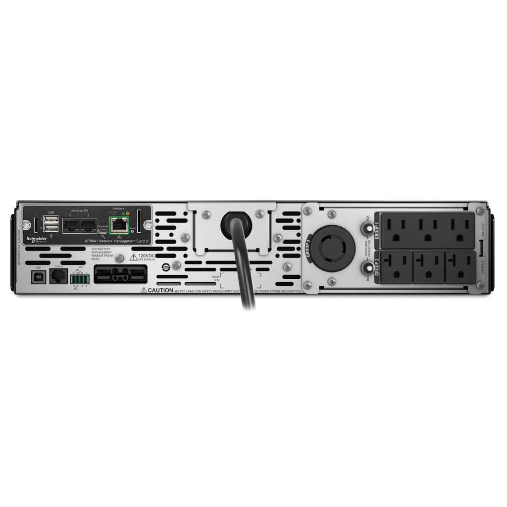 The APC Smart-UPS X SMX3KRMLVNCUS delivers reliable power protection and scalable battery runtime ideal for servers, point-of-sale, routers, switches, and other network devices. This 2880VA/2700W line interactive UPS features a 2U rack/tower convertible design, pure sine wave output, and extended runtime capabilities. It includes a preinstalled Network Management Card for remote monitoring and control, a SmartSlot, and user-selectable 100V–127V settings. Equipped with multiple NEMA outlets, it supports up to 10 additional battery packs and includes a 1-year Secure NMC subscription. Compatible with replacement battery APCRBC117US.