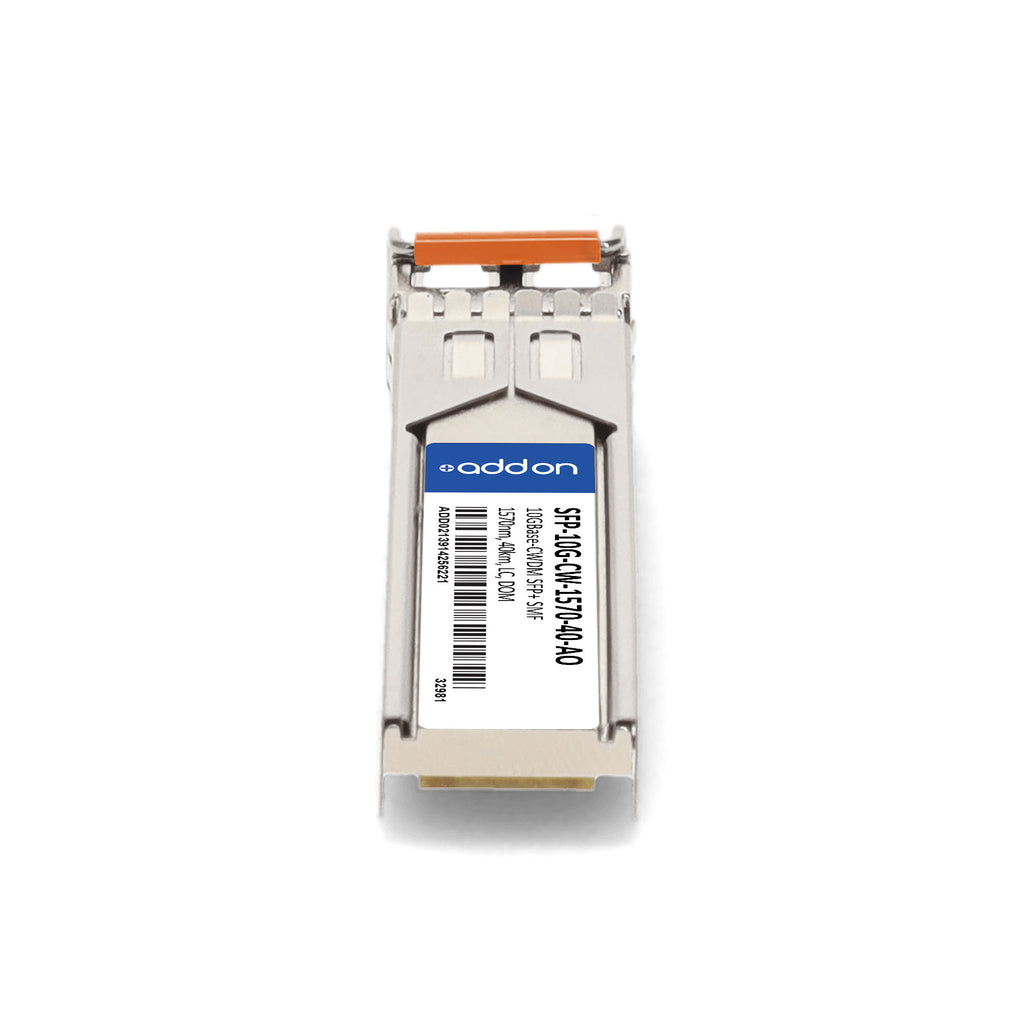 The AddOn Cisco® SFP-10G-CW-1570-40AO is a TAA-compliant CWDM SFP+ transceiver designed for 10 Gigabit Ethernet and 10G CWDM applications. Operating over single-mode fiber (SMF), it delivers up to 40km reach using a 1570nm wavelength via an LC duplex connector. With support for Digital Optical Monitoring (DOM), this module ensures real-time performance tracking and reliable long-haul connectivity.