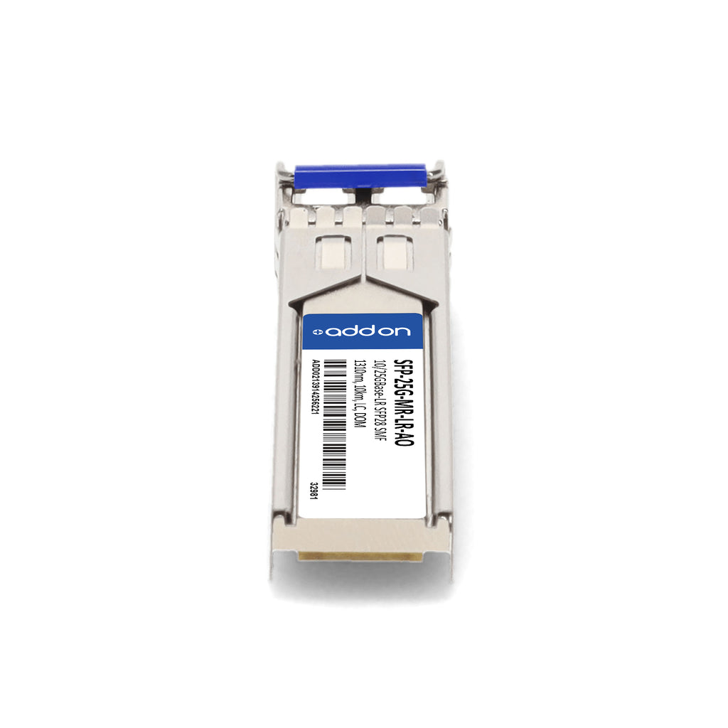 The AddOn Arista Networks® SFP-25G-MR-LR Compatible SFP28 transceiver delivers reliable 10/25GBase-LR Ethernet connectivity up to 10 km over single-mode fiber (SMF) using a 1310 nm wavelength via a duplex LC connector. Designed for seamless compatibility with Arista Networks® equipment, this hot-swappable module is ideal for high-performance enterprise, access, and data center applications.