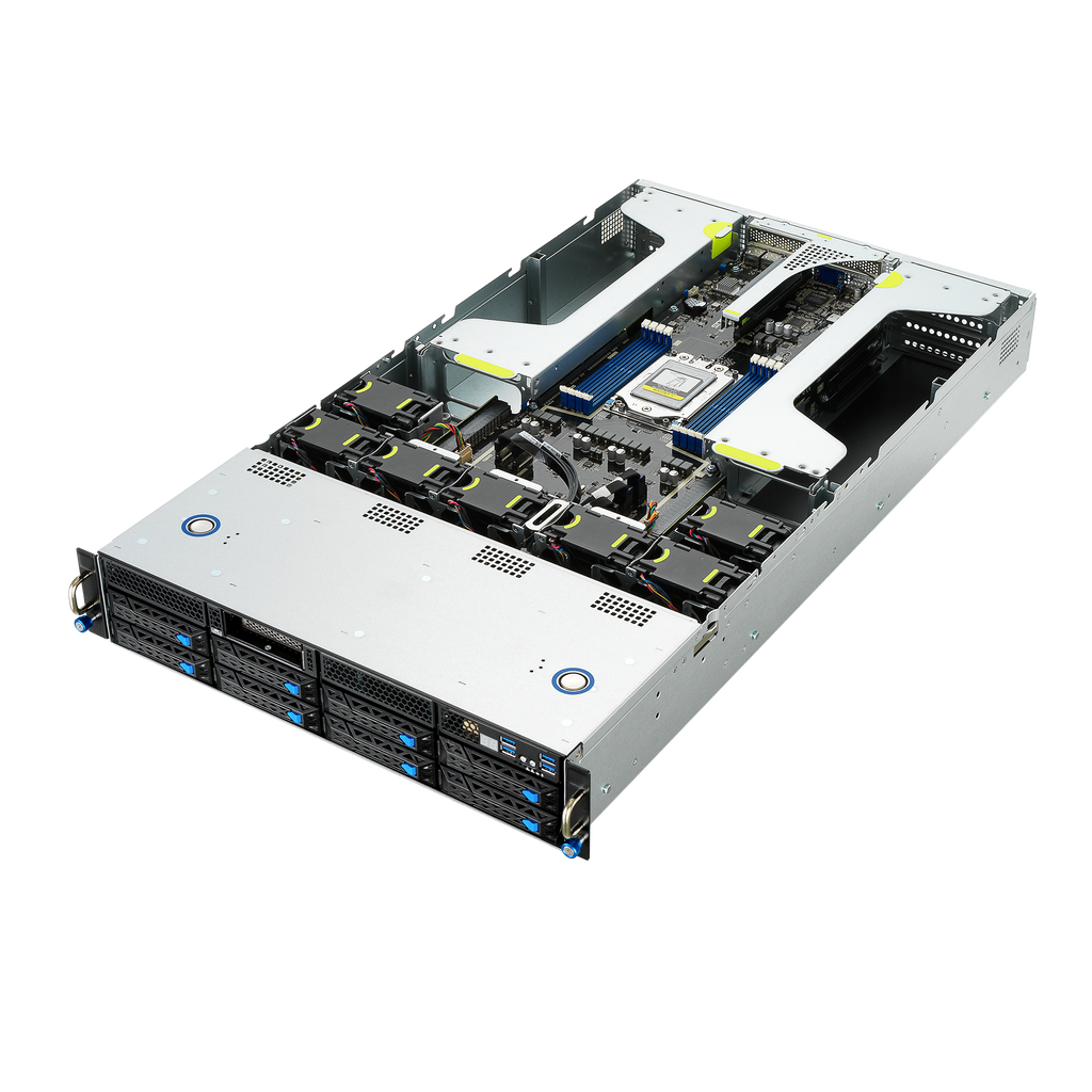The ASUS ESC4000A-E10 is a powerful 1-socket 2U accelerator server engineered to handle compute-intensive workloads with exceptional efficiency. Powered by 3rd Gen AMD EPYC™ processors with AMD 3D V-Cache™ technology, it delivers high core density and enhanced performance for AI, virtualization, and HPC applications—all within a thermally optimized chassis.