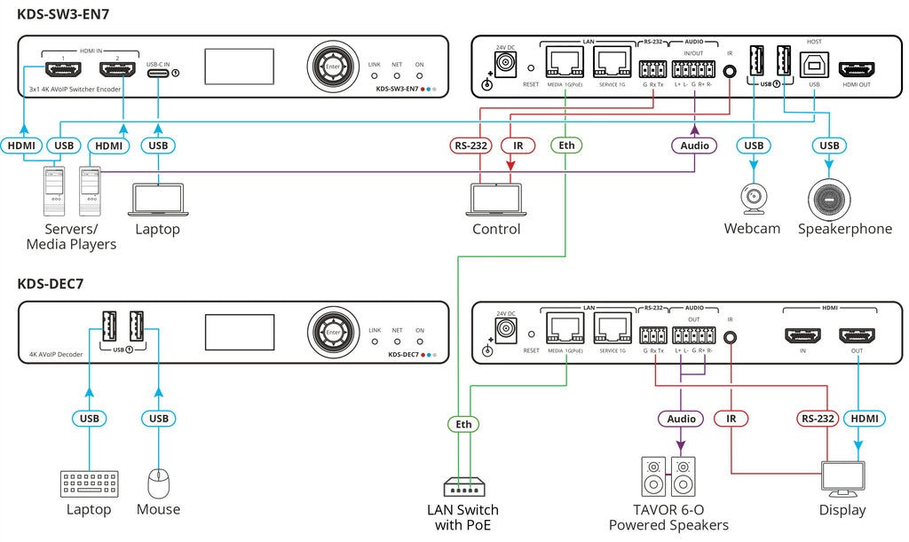 The Kramer KDS-SW3-EN7 is an advanced 4K AVoIP encoder switcher engineered for high-performance streaming, ultra-fast source switching, and seamless AV transport over standard 1GbE networks. Built for modern AV infrastructures, it supports unicast and multicast streaming, Dante digital audio, USB/KVM, and comprehensive control options, making it ideal for corporate, education, command centers, digital signage, and professional AV deployments.
