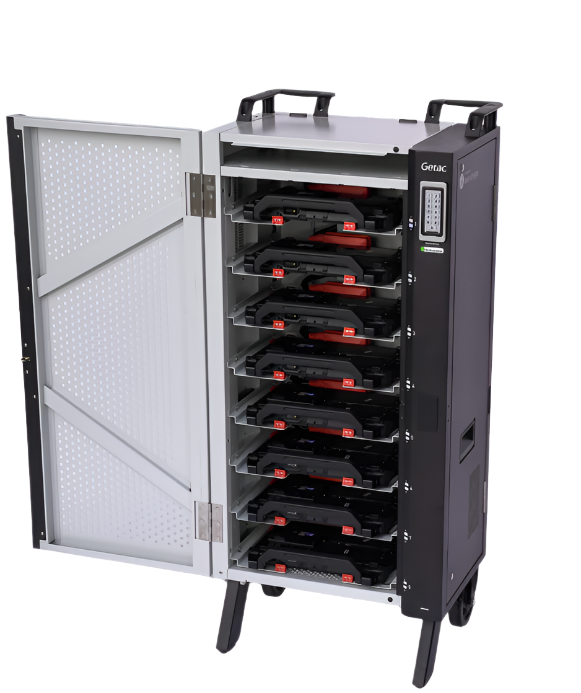 In partnership with LocknCharge, Getac offers a TAA-compliant 8-bay charging cabinet engineered for secure storage, efficient charging, and easy management of your Getac rugged tablets.