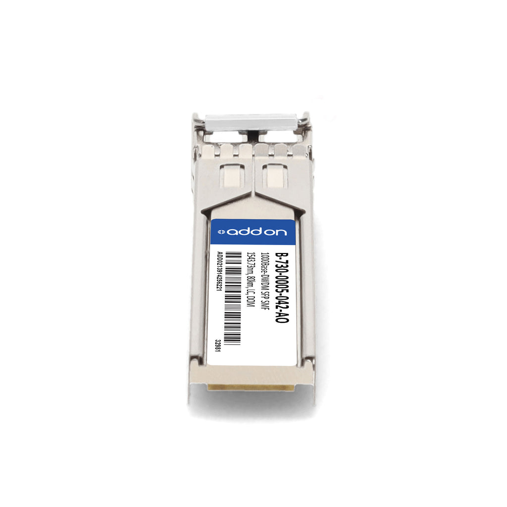 The AddOn Ciena® B-730-0005-042 compatible SFP transceiver delivers reliable 1000Base-DWDM throughput up to 80km over single-mode fiber (SMF) using a 1543.73nm wavelength via an LC connector. Engineered for seamless interoperability, this module is guaranteed 100% compatible with the equivalent Ciena® transceiver.