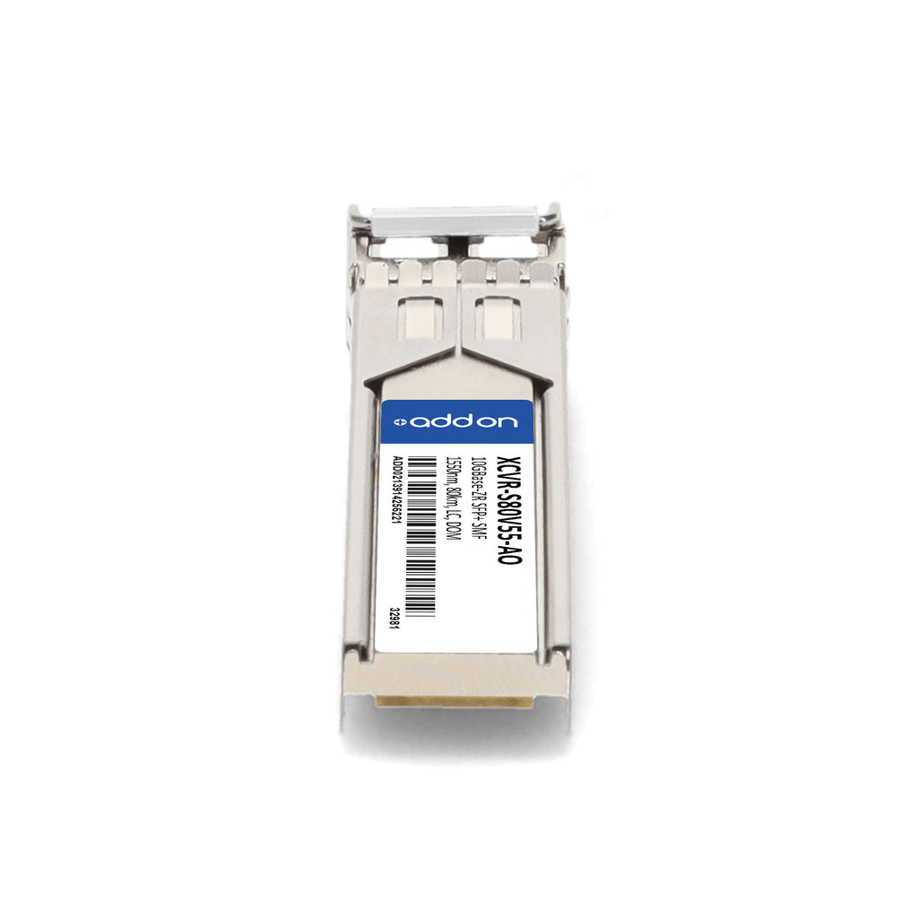 The AddOn Ciena® XCVR-S80V55 compatible TAA 10GBase-ZR SFP+ transceiver delivers reliable 10 Gigabit Ethernet connectivity up to 80km over single-mode fiber (SMF) using a 1550nm wavelength via a duplex LC connector. Designed for performance and durability, it is fully compliant with SFF-8432 and SFF-8472 standards, supports Digital Optical Monitoring (DOM) for real-time parameter tracking, and operates within an extended industrial temperature range of -40°C to 85°C.
