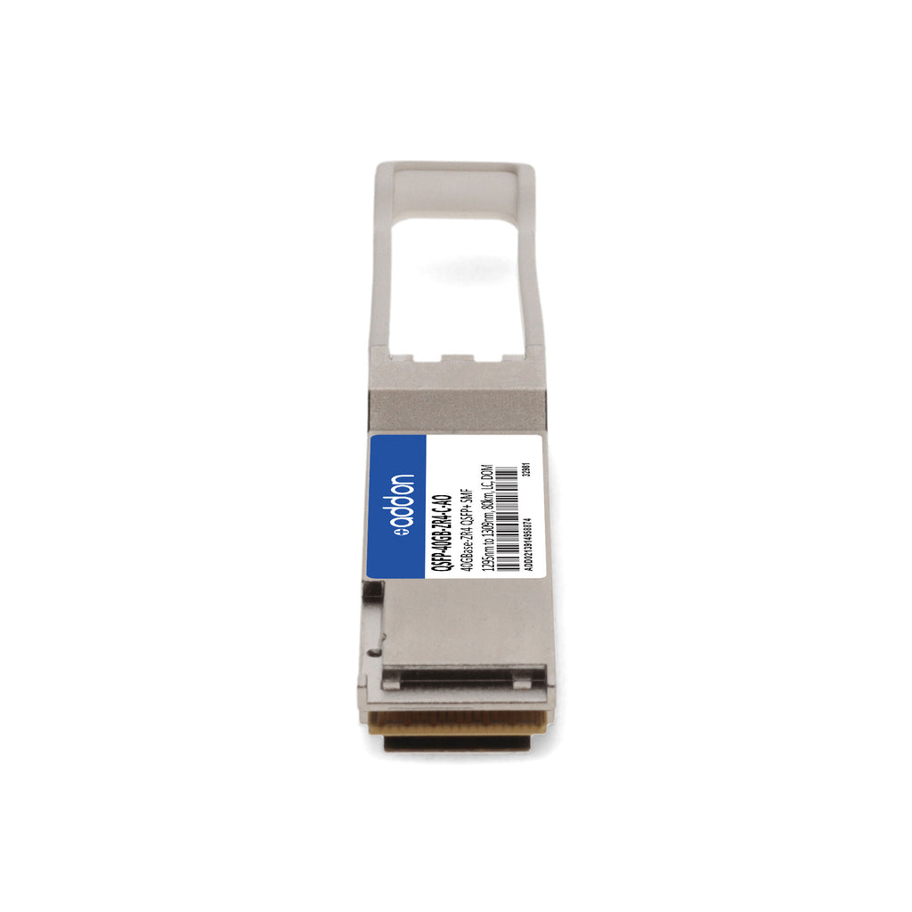 The AddOn Cisco® QSFP-40GB-ZR4-C-AO is a high-performance, TAA-compliant 40GBase-ZR4 QSFP+ transceiver designed to deliver reliable 40 Gigabit Ethernet connectivity over long distances. Supporting up to 80 km reach over single-mode fiber (SMF) with wavelengths ranging from 1295nm to 1309nm, this transceiver uses an LC duplex connector for seamless integration into high-capacity data center, enterprise, and telecom networks.