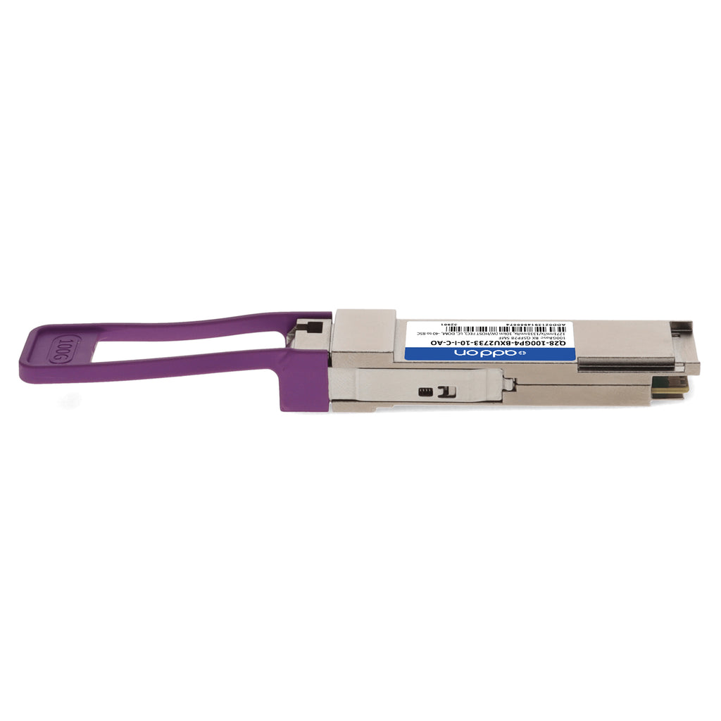 The AddOn Cisco® Compatible Q28-100GP4-BXU2733-10-I-C-AO is a high-performance, single-lambda QSFP28 transceiver designed for 100GBase-BX Ethernet links over single-mode fiber (SMF) up to 10 km. Utilizing PAM4 modulation and operating at 1271 nm transmit / 1331 nm receive wavelengths, it ensures reliable, high-speed connectivity for data center, enterprise, and telecom environments.