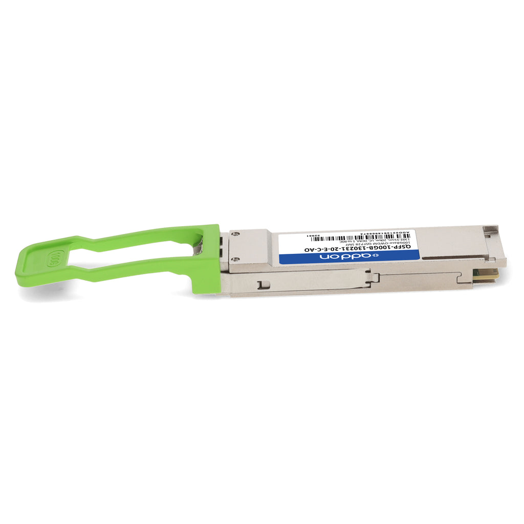 Engineered to meet QSFP28 MSA and IEEE 802.3bs standards, this module features a high-sensitivity APD receiver, integrated Digital Optical Monitoring (DOM) for real-time parameter access, and a robust operating temperature range of -5°C to +80°C. It is fully compliant with the Trade Agreements Act (TAA) and guaranteed 100% compatible with Cisco® equipment. Each unit is uniquely serialized, programmed, and rigorously tested to ensure identical functionality to OEM equivalents — all backed by AddOn’s limited lifetime warranty.