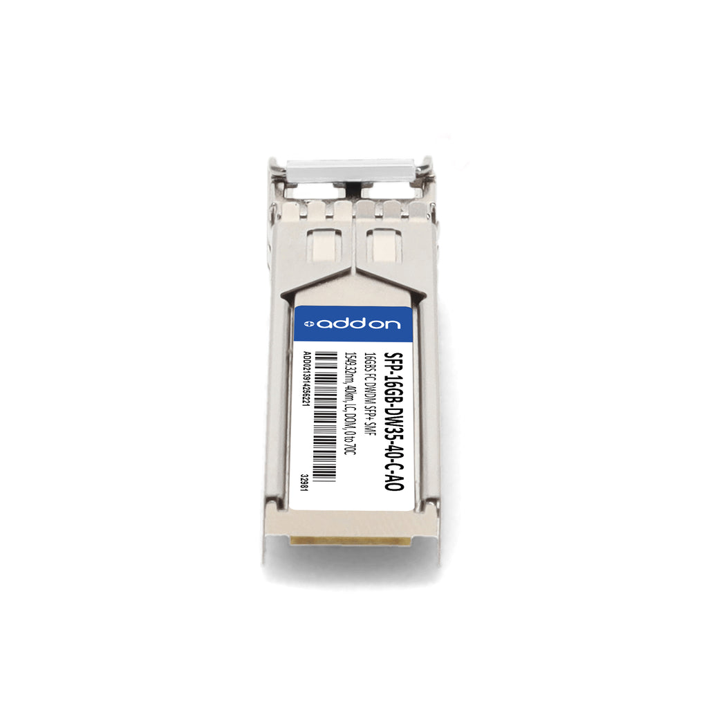 The AddOn SFP-16GB-DW35-40-C-AO is a Cisco® compatible 16GBase-DWDM Fibre Channel SFP+ transceiver designed to deliver reliable, high-speed connectivity for access, metro, and enterprise network applications. Operating on ITU-T Channel DW35 with a wavelength of 1549.32nm, this transceiver supports data rates up to 16Gbps and transmission distances up to 40km over single-mode fiber (SMF).
