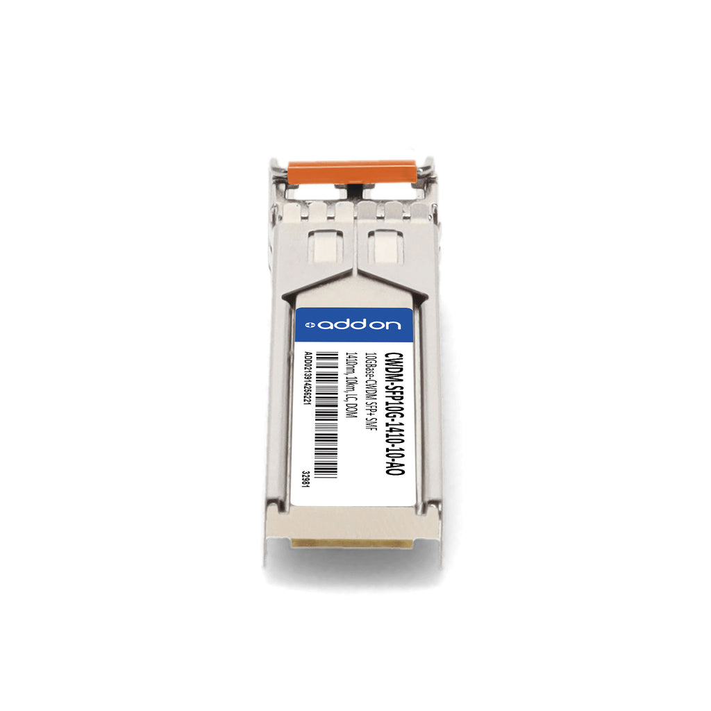The AddOn Cisco® CWDM-SFP10G-1410-10 Compatible TAA 10GBase-CWDM SFP+ Transceiver is a high-performance optical module designed to deliver reliable 10-Gigabit connectivity for metro and access networks. Operating over single-mode fiber (SMF), this transceiver provides up to 10km of transmission distance using a 1410nm wavelength via an LC duplex connector. It supports Digital Optical Monitoring (DOM) for real-time diagnostics of key parameters such as temperature, voltage, and optical power, ensuring optimal network performance and simplified troubleshooting.