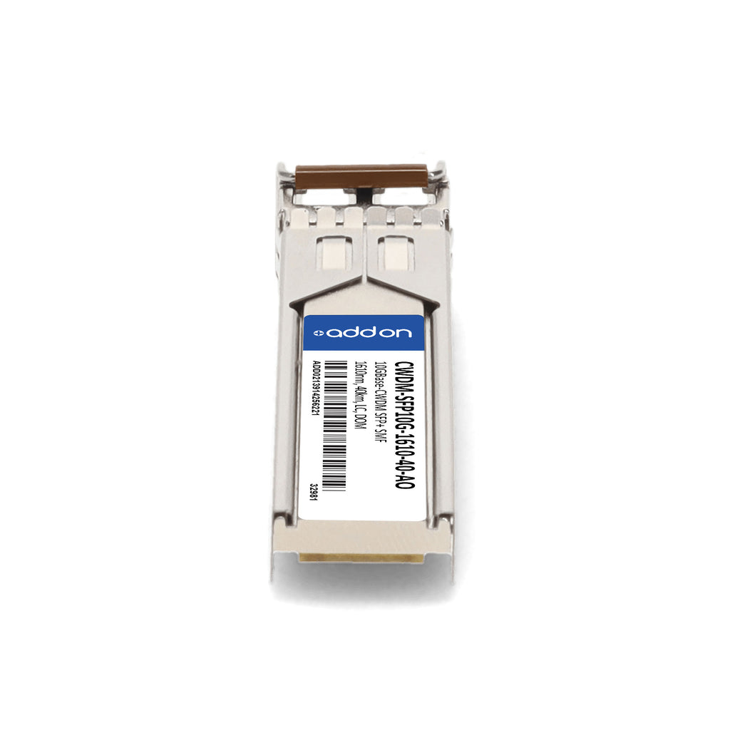 The AddOn Cisco® CWDM-SFP10G-1610-40 compatible SFP+ transceiver delivers reliable 10GBase-CWDM throughput up to 40km over single-mode fiber (SMF) using a 1610nm wavelength via an LC connector. Engineered for seamless interoperability, this hot-swappable module is guaranteed to be 100% compatible with Cisco® equipment.