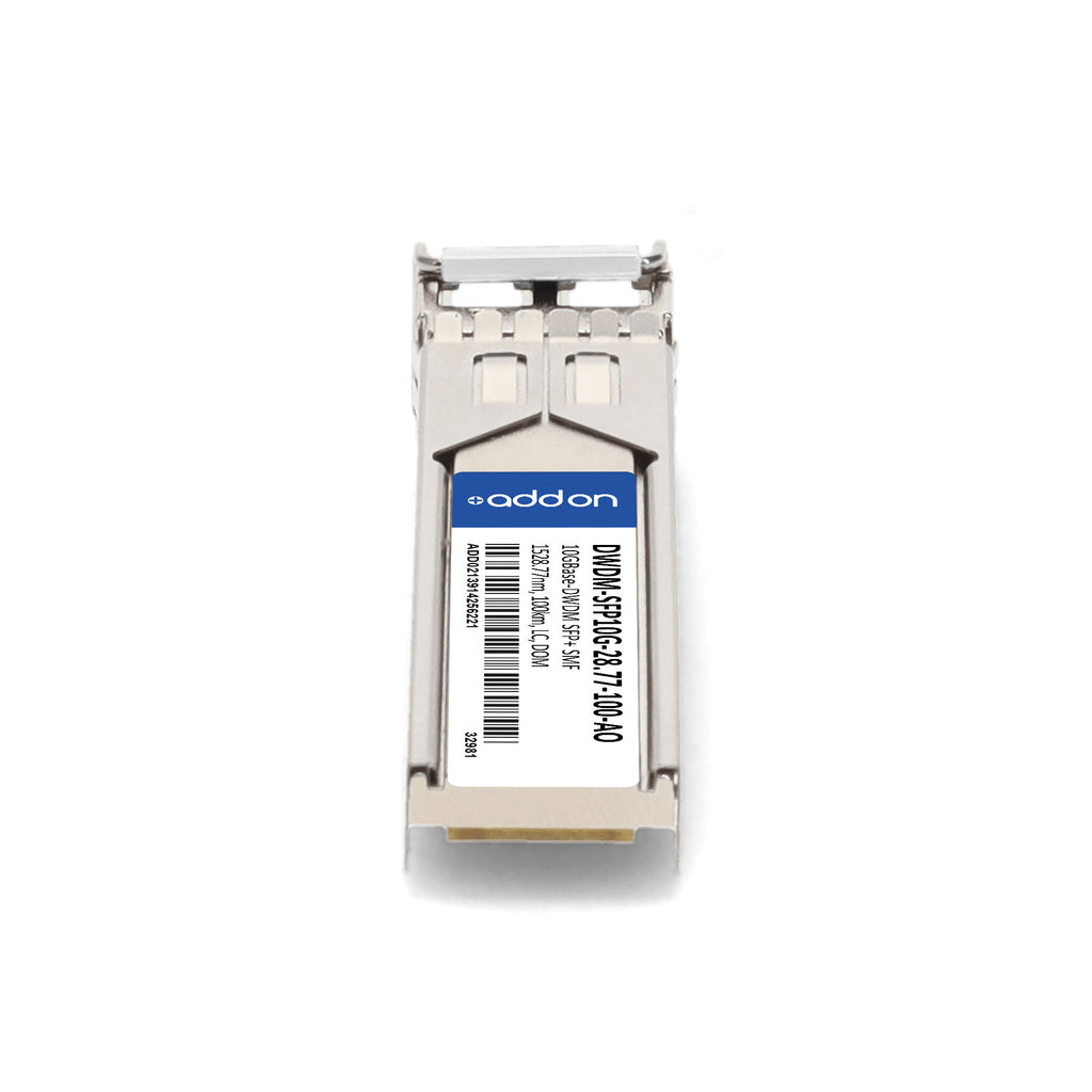 The AddOn Cisco® DWDM-SFP10G-28.77 Compatible 10GBase-DWDM SFP+ Transceiver is engineered for high-performance data transmission over long distances. Supporting up to 100km over single-mode fiber (SMF), this hot-swappable transceiver operates at a 1528.77nm wavelength (C-Band, Channel 61, 100GHz spacing) and provides seamless 10Gbps throughput.
