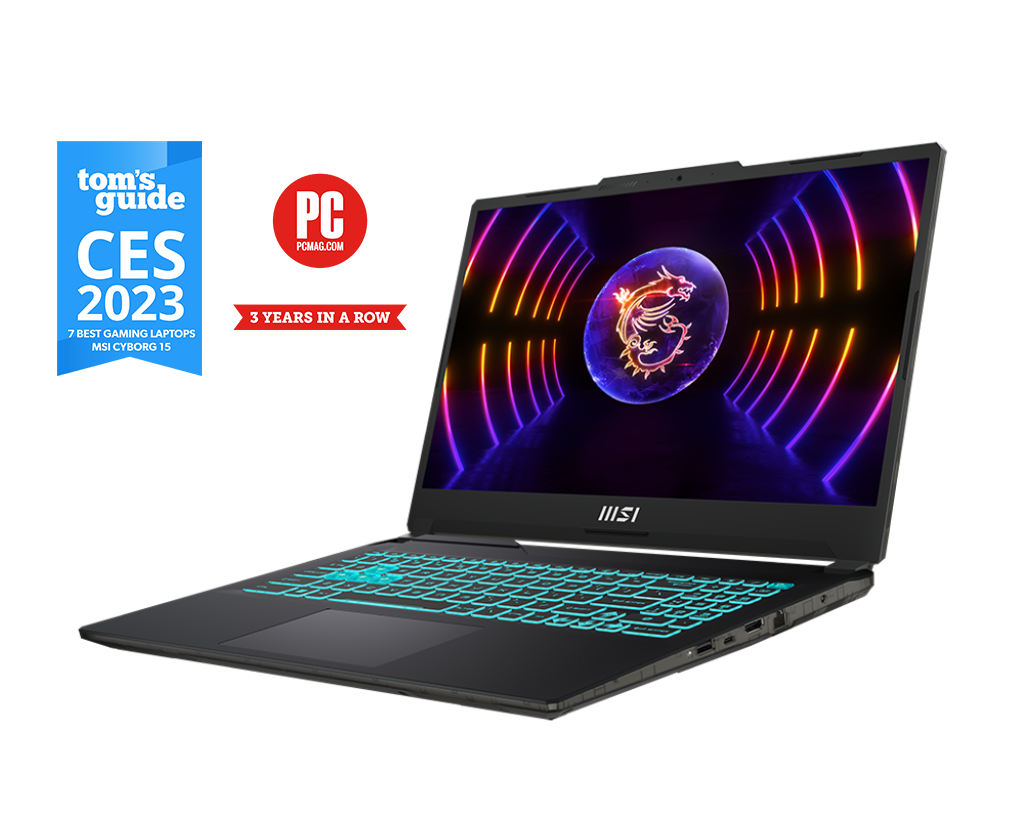 Finished in a sleek black chassis with a blue backlit keyboard featuring anti-ghosting, this laptop balances style and function. Connectivity options including USB-C with DisplayPort support, Wi-Fi 6, and Gigabit Ethernet make it easy to connect peripherals, external displays, and high-speed networks. Lightweight and portable, the MSI Cyborg 15 is built for users who want performance without compromise.