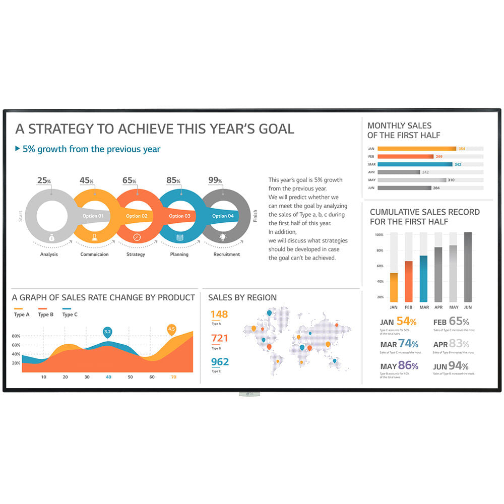 SUPERB PICTURE QUALITY Clear View with Anti-glare Coating Viewers can be distracted by reflections and glare when watching a screen in a brightly lit environment. The UH5F-H series has increased levels of haze surface treatment, which can enhance visibility and text readability. SUPERB PICTURE QUALITY ULTRA HD Resolution The UHD resolution allows users to view details even when zooming in on the display, with four times higher definition than FHD. LG IPS panels allow you to enjoy lifelike picture quality with minimal variation from wide viewing angles. webOS SMART SIGNAGE PLATFORM High-Performance with webOS Quad Core SoC (System on Chip) can execute several tasks at the same time without a separate media player. Additionally, the webOS platform enhances user convenience with intuitive UI and simple app development tools. webOS SMART SIGNAGE PLATFORM External Sensor Compatibility LG webOS smart signage platform easily supports connections with external sensors such as GPIO, NFC/RFID, temperature sensors, etc by using webOS application and USB plug-in. MEETING ROOM SOLUTION COMPATIBILITY Compatible with AV Control System The UH5F-H series has Crestron Connected Certification, a function and network-based control system that is dedicated to meeting rooms and that meets a growing need in the corporate meeting space market. MEETING ROOM SOLUTION COMPATIBILITY Compatible with Video Conference System For the optimal video meeting experience, the UH5F-H series has certified its compatibility with Cisco Spark Room Kits, a system that offers powerful and integrated control for a smarter video conference, eliminating a waste of time to set up the picture quality or to change input on incoming calls. EASY MANAGEMENT Real-time Monitoring & Control Through the embedded web monitoring webpage, Control Manager* you can control and monitor the status of displays remotely, allowing you to flexibly and rapidly respond to a malfunction or failure anywhere. EASY MANAGEMENT Signage 365 Care Maintenance gets easier and faster with the optional Signage 365 Care service, an additional cloud service solution provided by LG. Signage 365 Care remotely manages status of displays in your workspaces for fault diagnosis and remote services, helping ensure the stable operation of your business. USER CONVENIENCE Multiple Screens with PBP or PIP* The PBP (Picture-By-Picture) and PIP (Picture-In-Picture) features allows the screen to be divided into 4 split screens in either landscape or portrait format. This gives great flexibility to allocate space for each content source. USER CONVENIENCE Wireless Access Point The UH5F-H series operates as a virtual router which can be Used as a wireless access point for mobile devices.