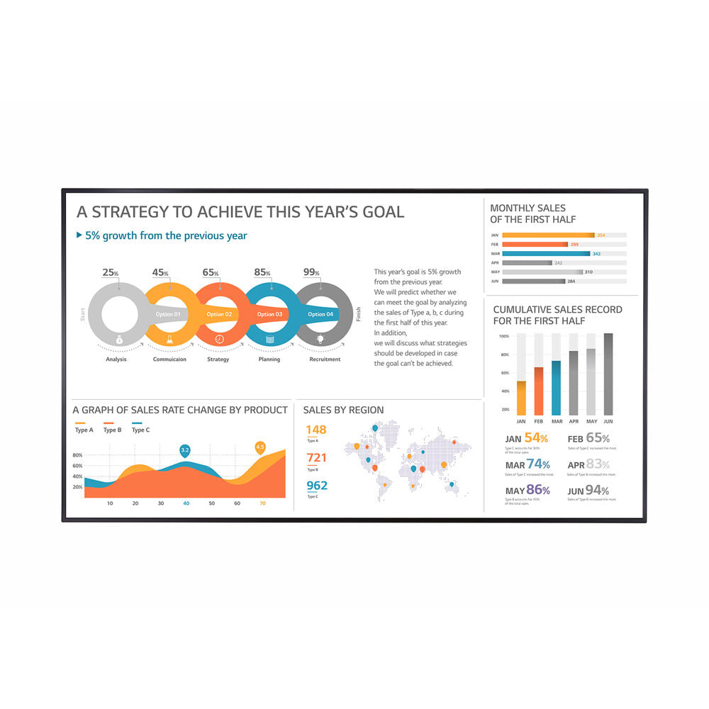 Clear View with Non-glare Coating Viewers can be annoyed by unnecessary reflections when watching a screen under brightly lit conditions. The UH5F-H series has resolved such inconveniences by increasing the level of haze, which enhances visibility and text readability. ULTRA HD Resolution With the resolution that is 4 times higher than FHD, it makes the color and details of the contents more vivid and realistic. In addition, the wide viewing angle applied with an IPS panel, provides clear contents with no distortion.webOS SMART SIGNAGE PLATFORM