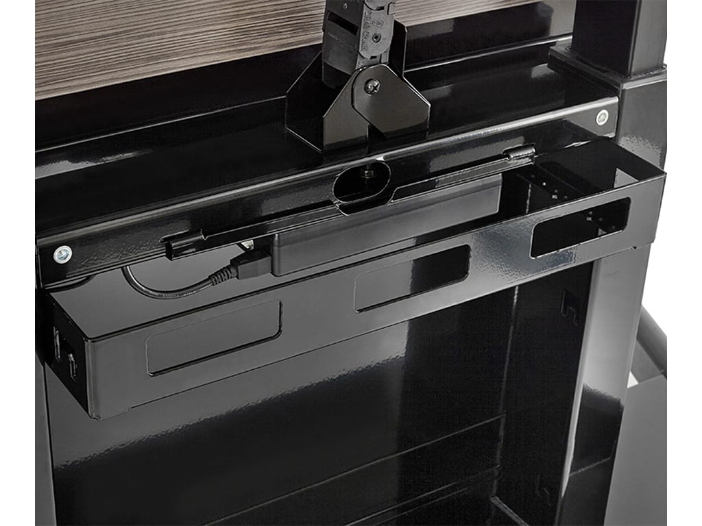 The front and rear panels provide clean aesthetics while concealing 3RU of internal rack space, cable pathways, and equipment storage. Large side handles and durable 5" casters (two locking) ensure safe, controlled maneuverability. Available in three premium finishes, with custom laminate or veneer options, the DynamiQ Executive Cart blends into any professional environment.