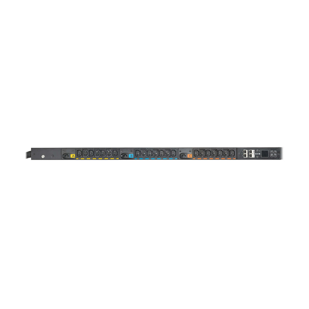 The Eaton EVMIG332X is a 3-phase metered input rack PDU G4 designed for secure, high-density power distribution in enterprise data centers and colocation facilities. Featuring a 240/415V input and 17.3kW output capacity, it offers 42 total outlets—24 C13 and 18 C39 universal—to support a wide range of IT equipment.