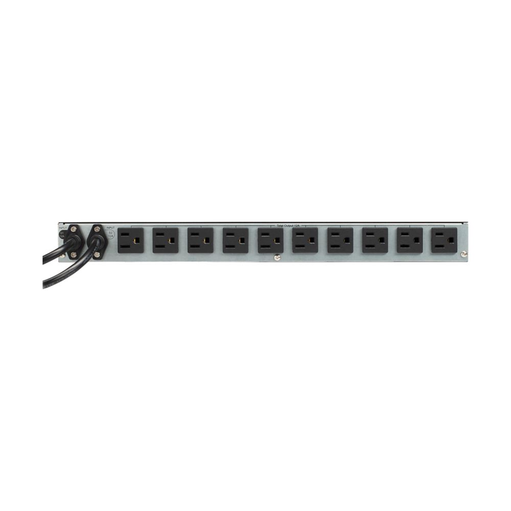 This 1U rack-mount PDU delivers up to 1.44 kW at 120V, supports 12A single-phase power, and features ten NEMA 5-15R outlets for efficient device distribution. Its horizontal mounting design fits standard racks and cabinets, making it ideal for data centers, server rooms, and edge deployments requiring redundant power inputs without manual intervention.